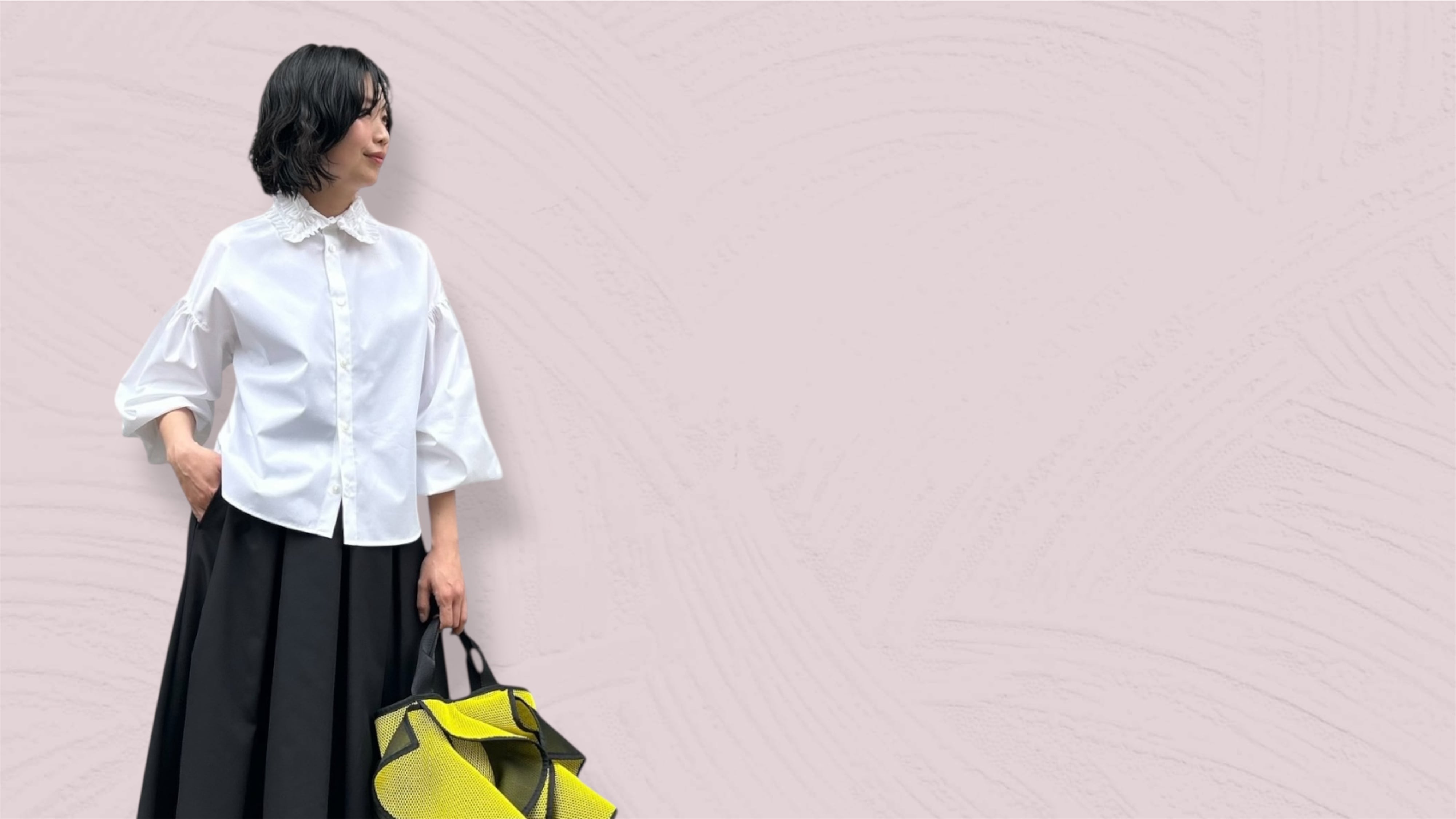 クラシックなシャツに華やかなフリルカラーをあしらったブラウス。
