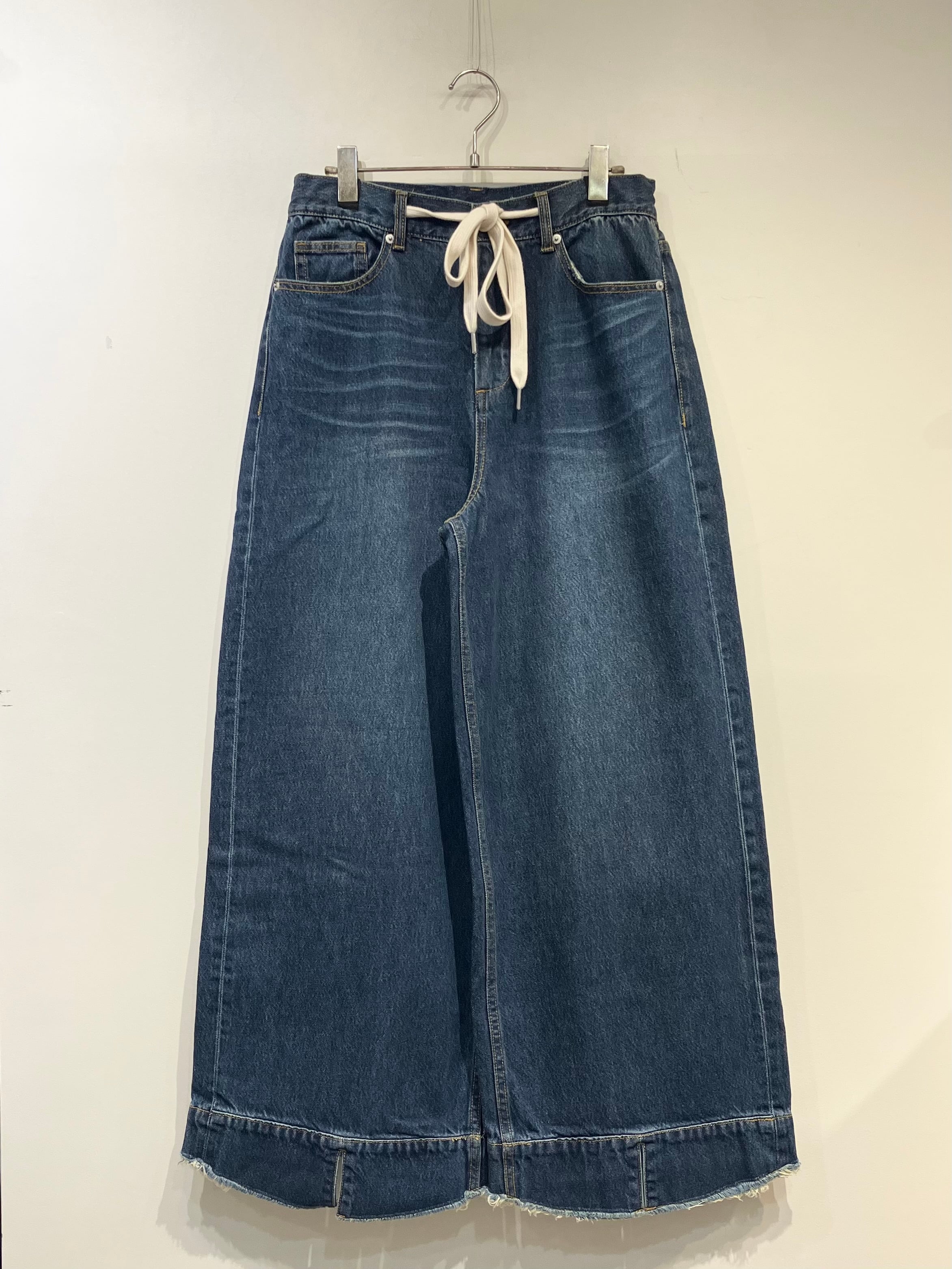 フロントのロングロープで抜け感のあるヴィンテージ加工を施したワイドデニム。