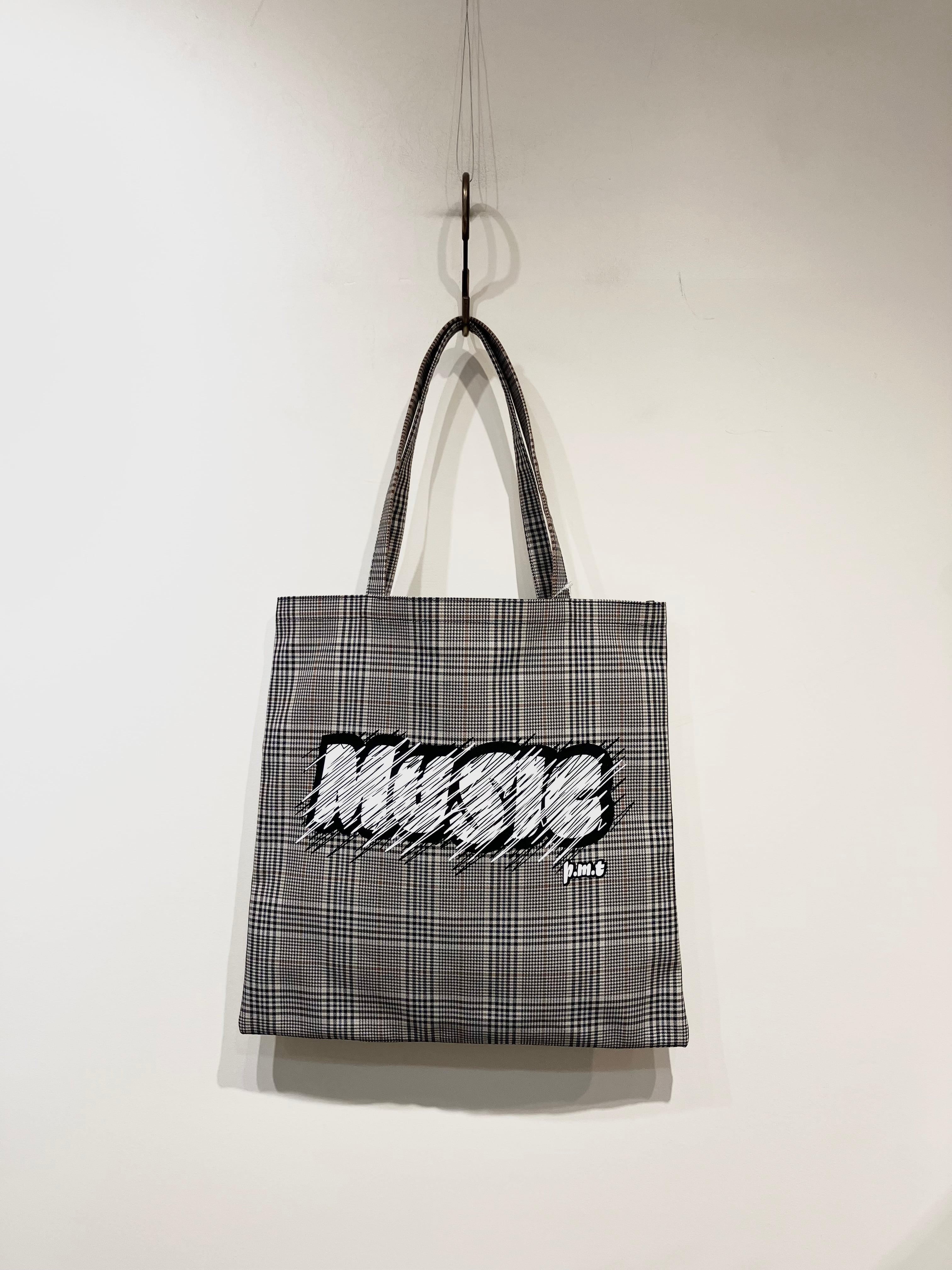 クラシカルなチェック柄に、手描き風の「MUSIC」ロゴがアクセントになっています。