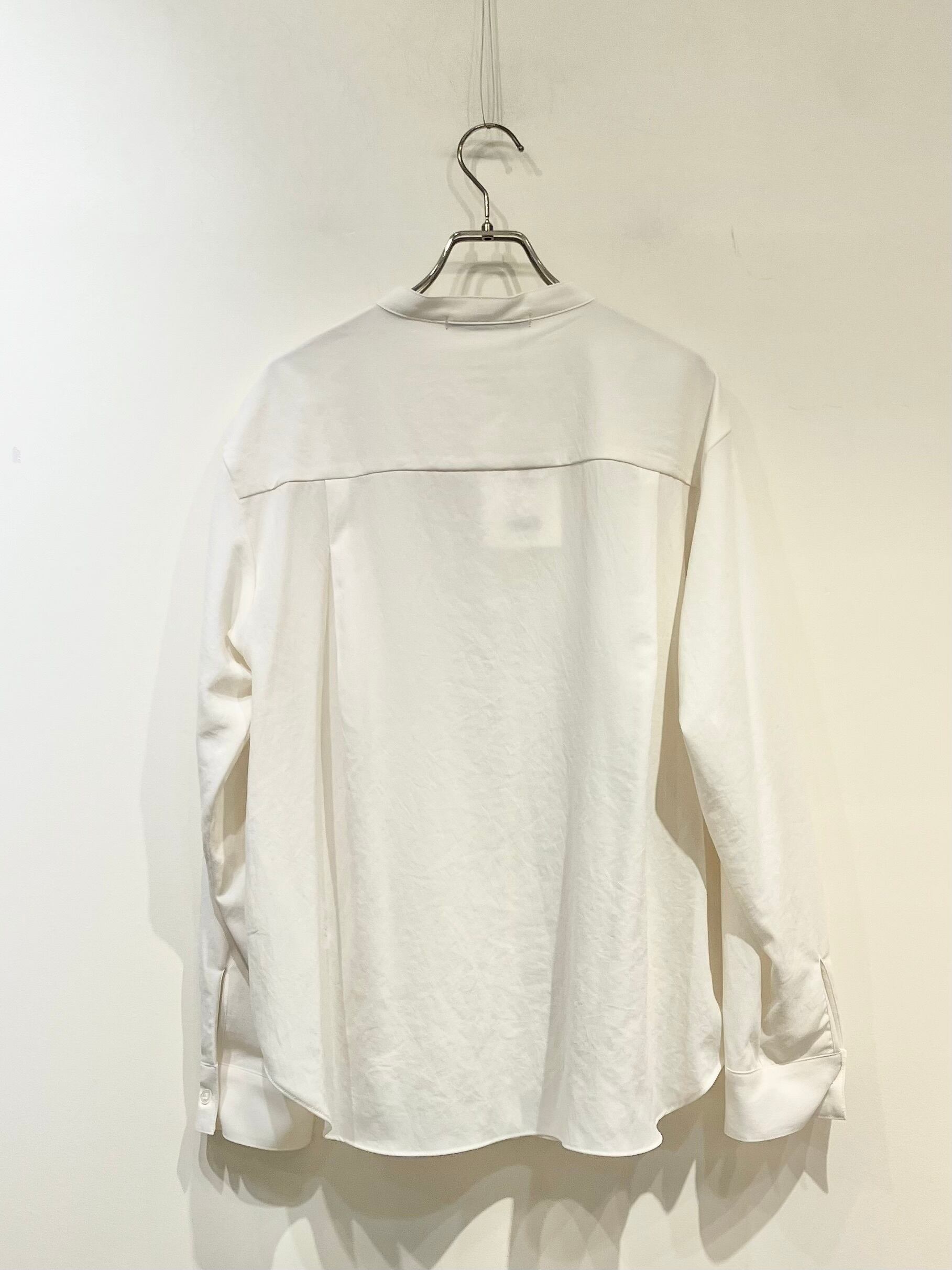 襟元をすっきり見せるバンドカラーと、程よくゆとりのあるシルエットで、