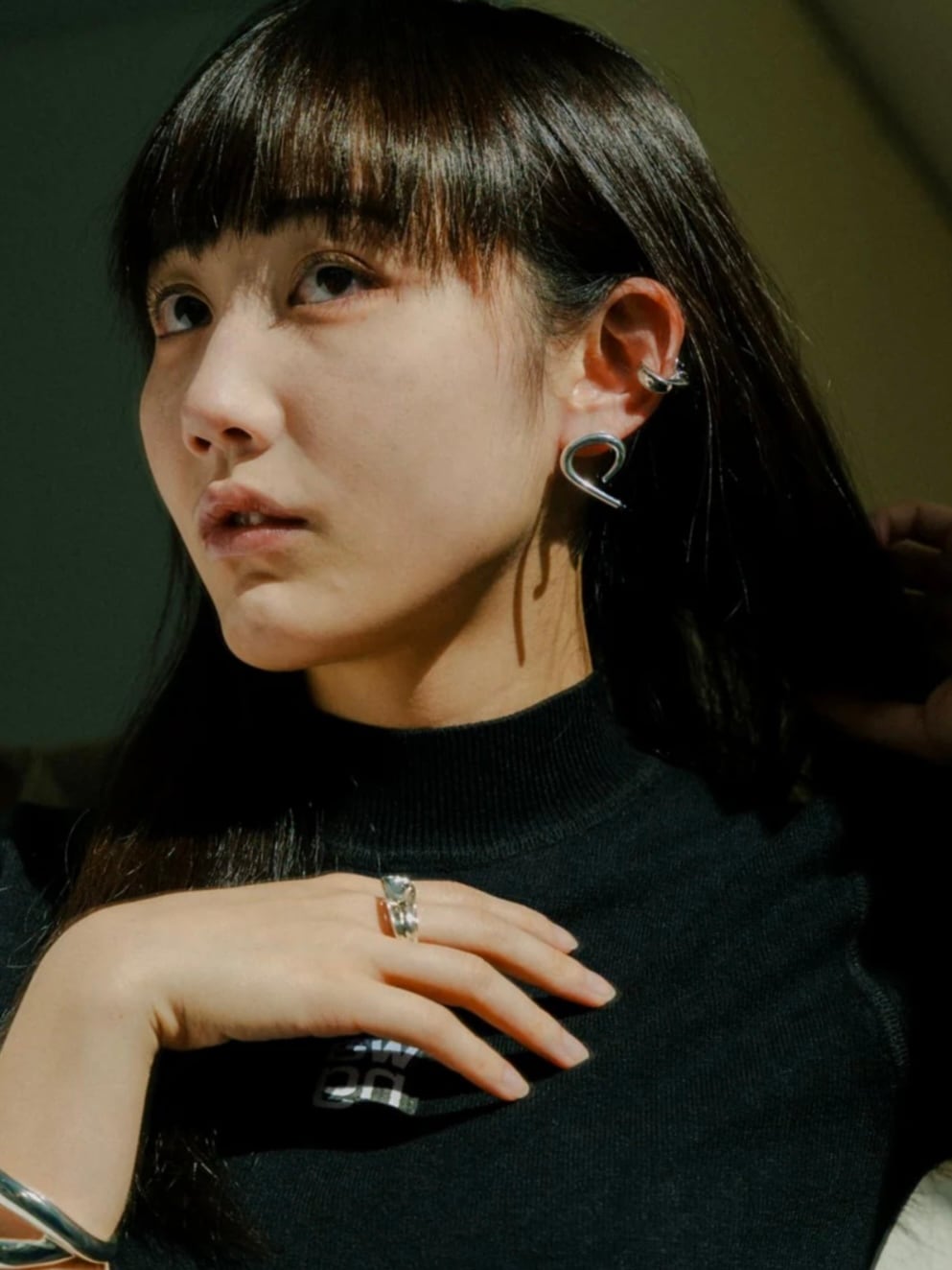 程よいボリュームと印象的なDrop形のラインが耳元に表情を与えてくれるアイテムです。