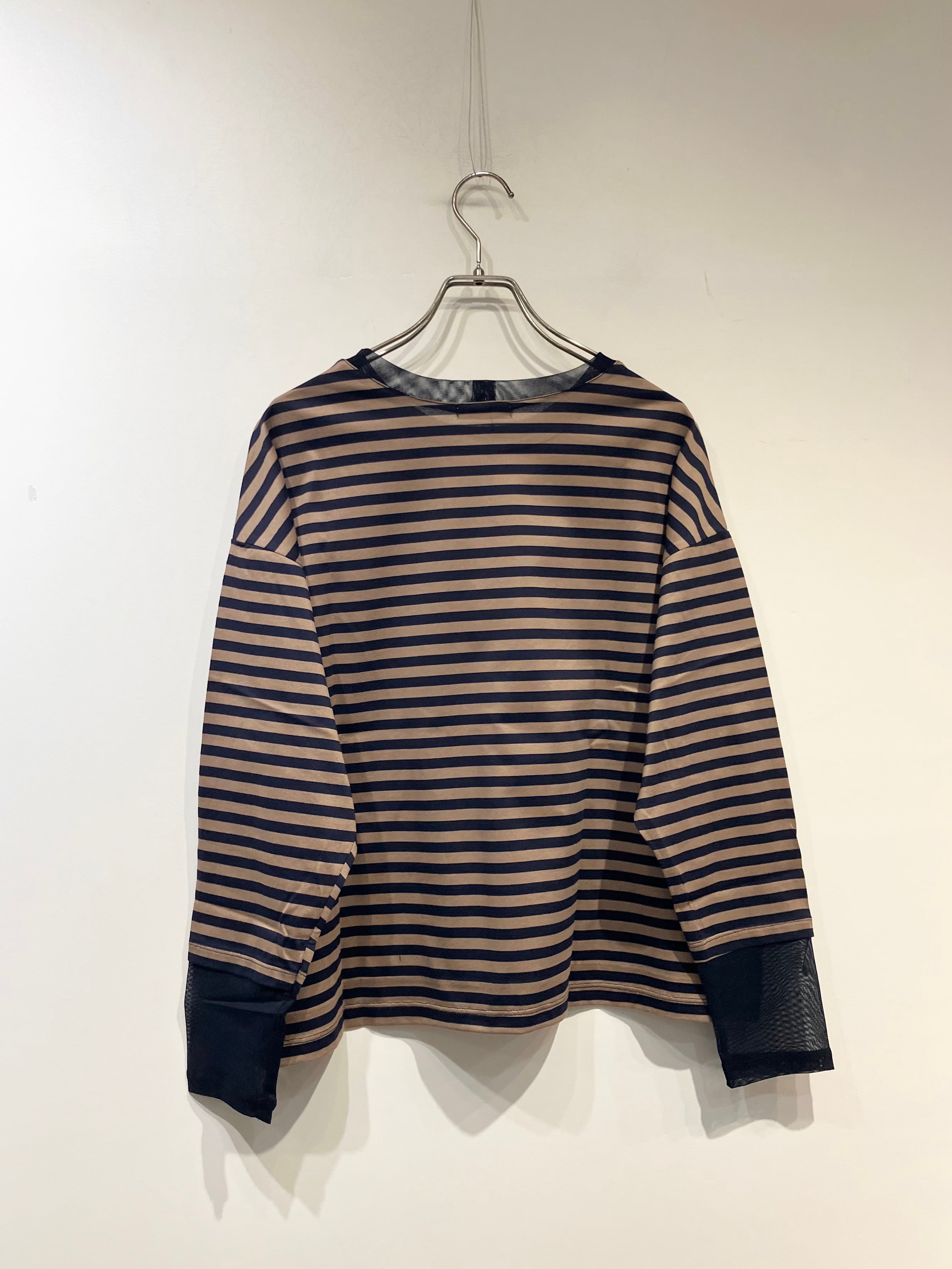 定番ボーダーにシアー素材で抜け感をプラスした、大人のモードカットソー。