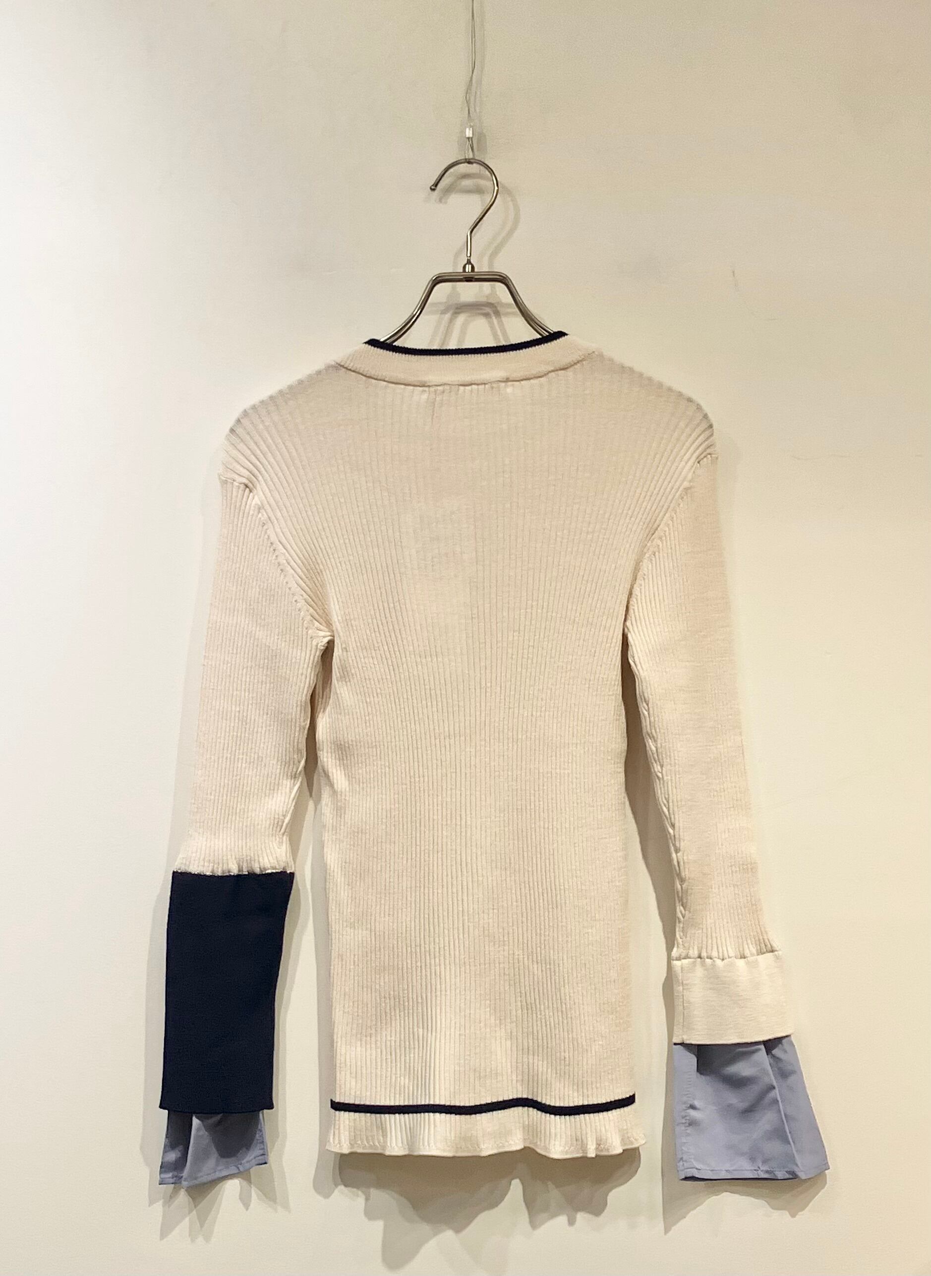 ベーシックな色合いながら、首元と袖口にあしらわれたバイカラーのディテール奥行きをプラスしてくれます。