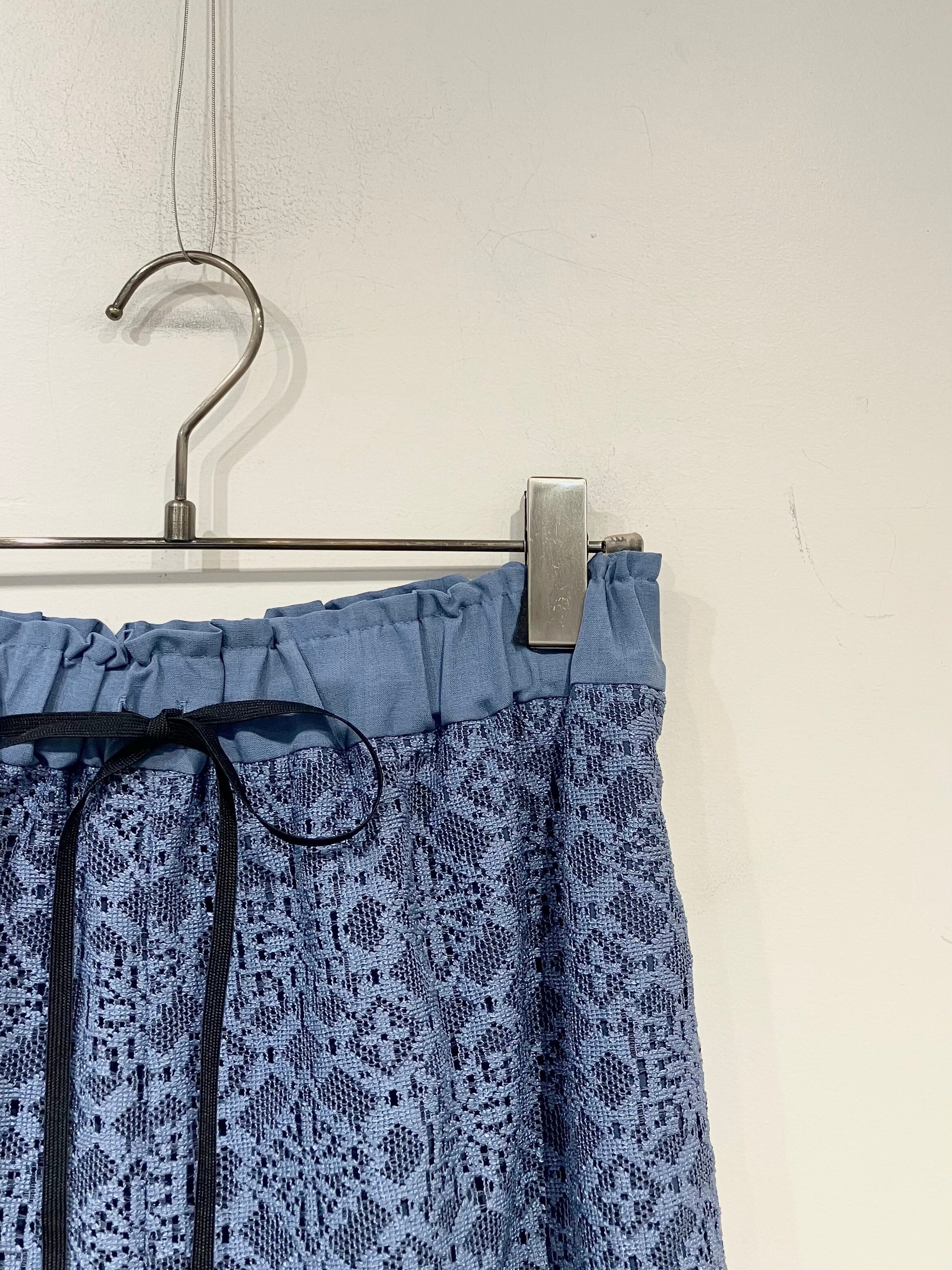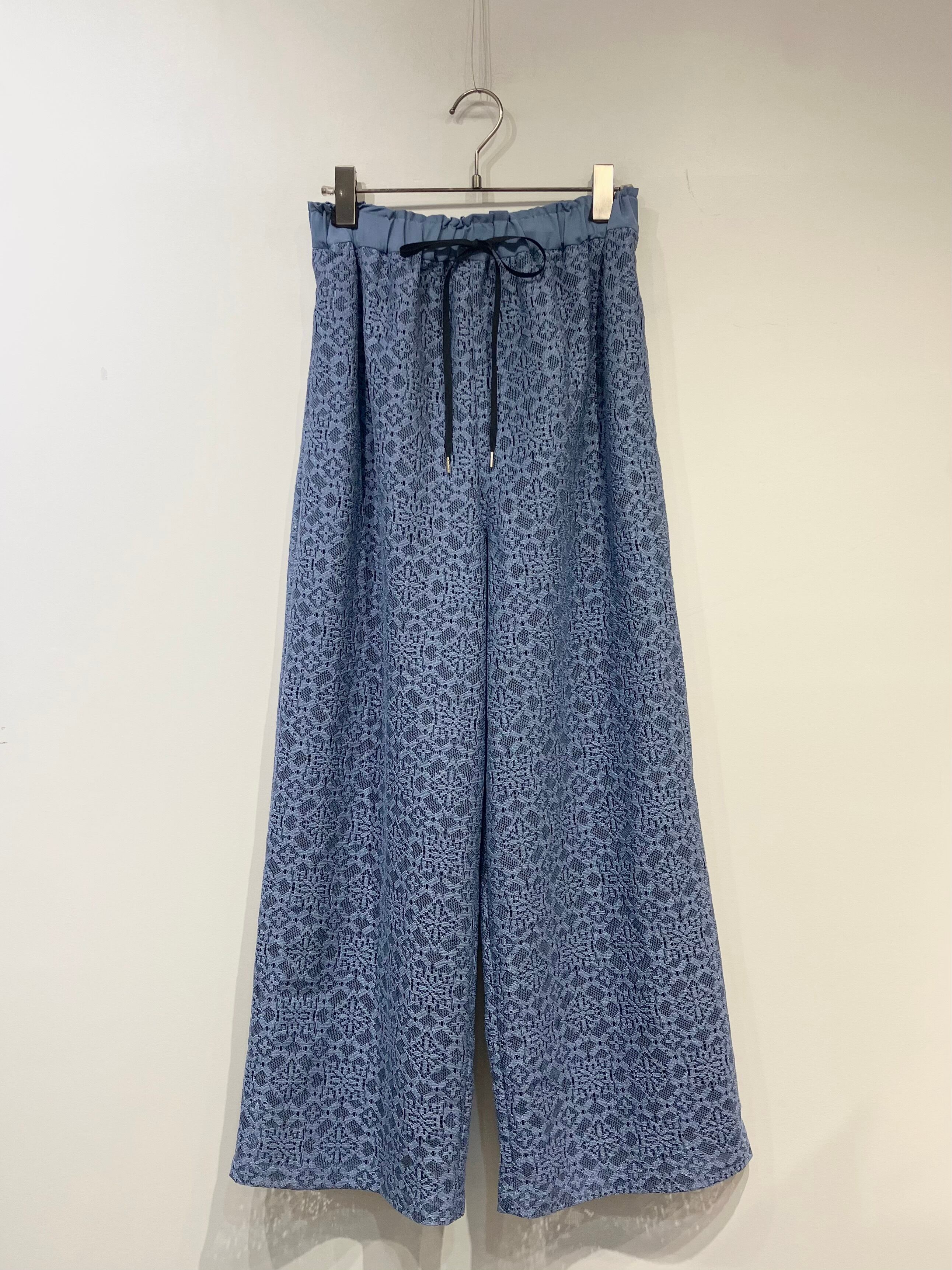 ソフトな風合いのジオメトリックレースを使用したリラックスできるシルエットのパンツ。