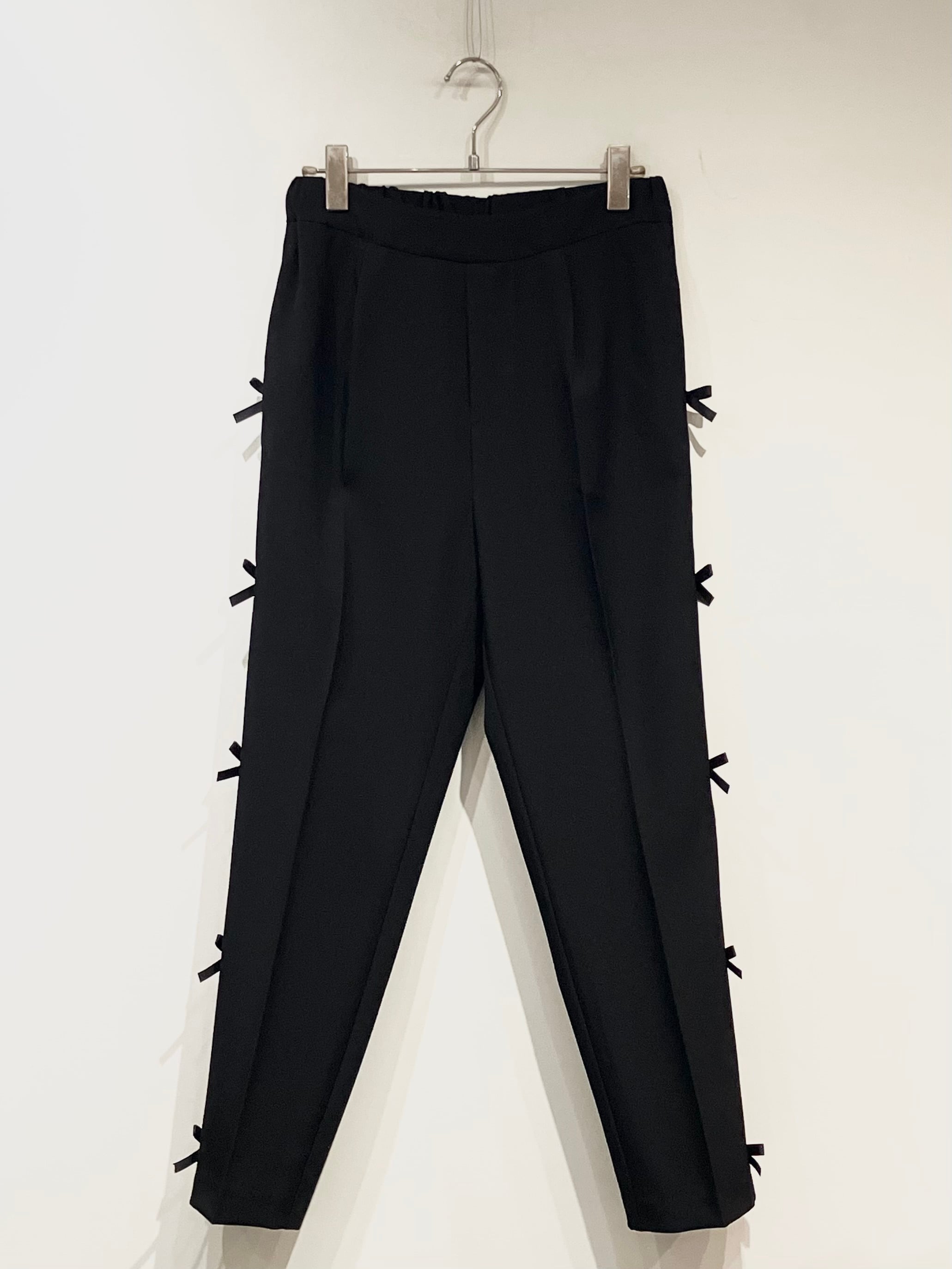 大人のレディスタイルに重宝するサイドリボンパンツ。