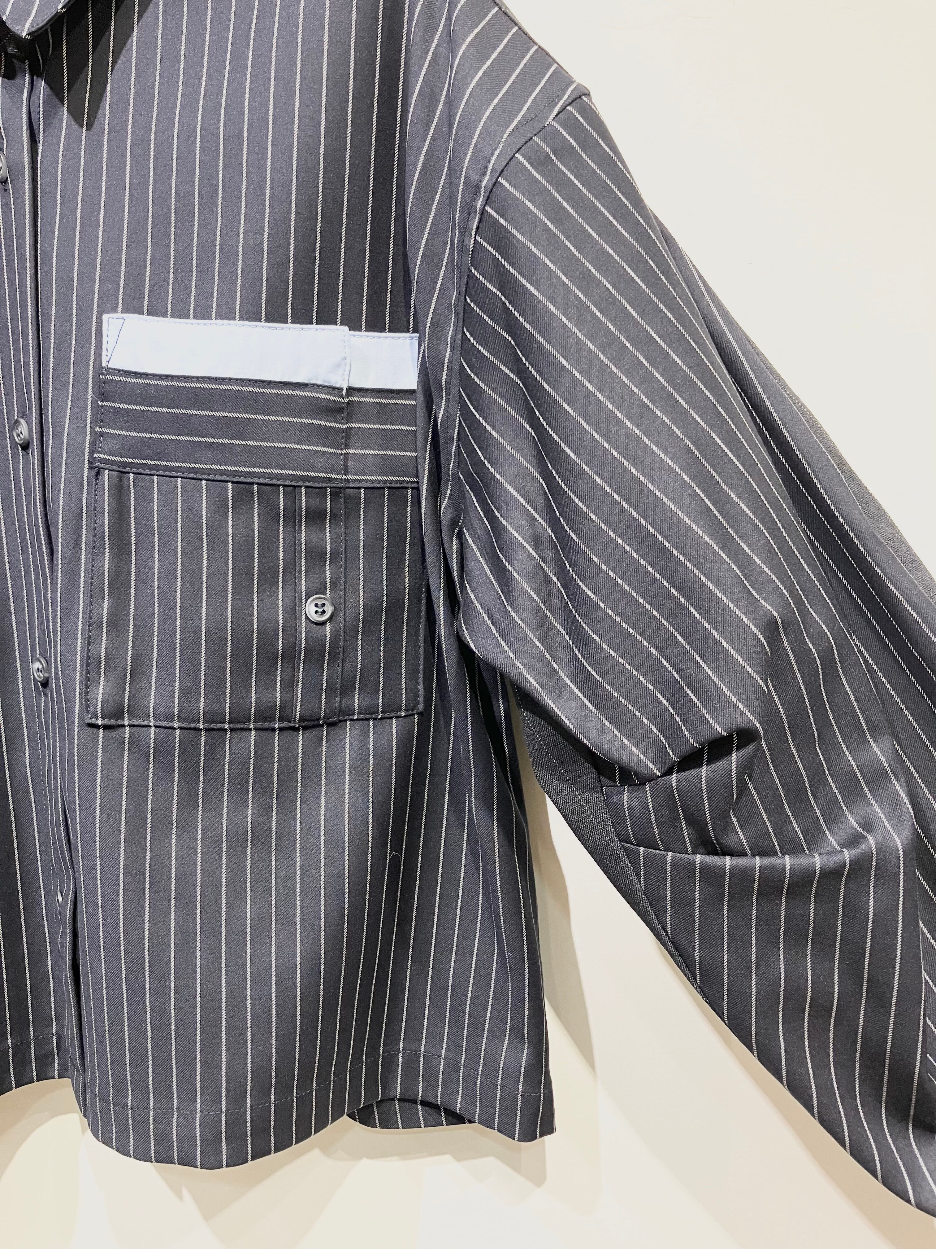 2素材の柄をコンビネーションしたデザインシャツ。
