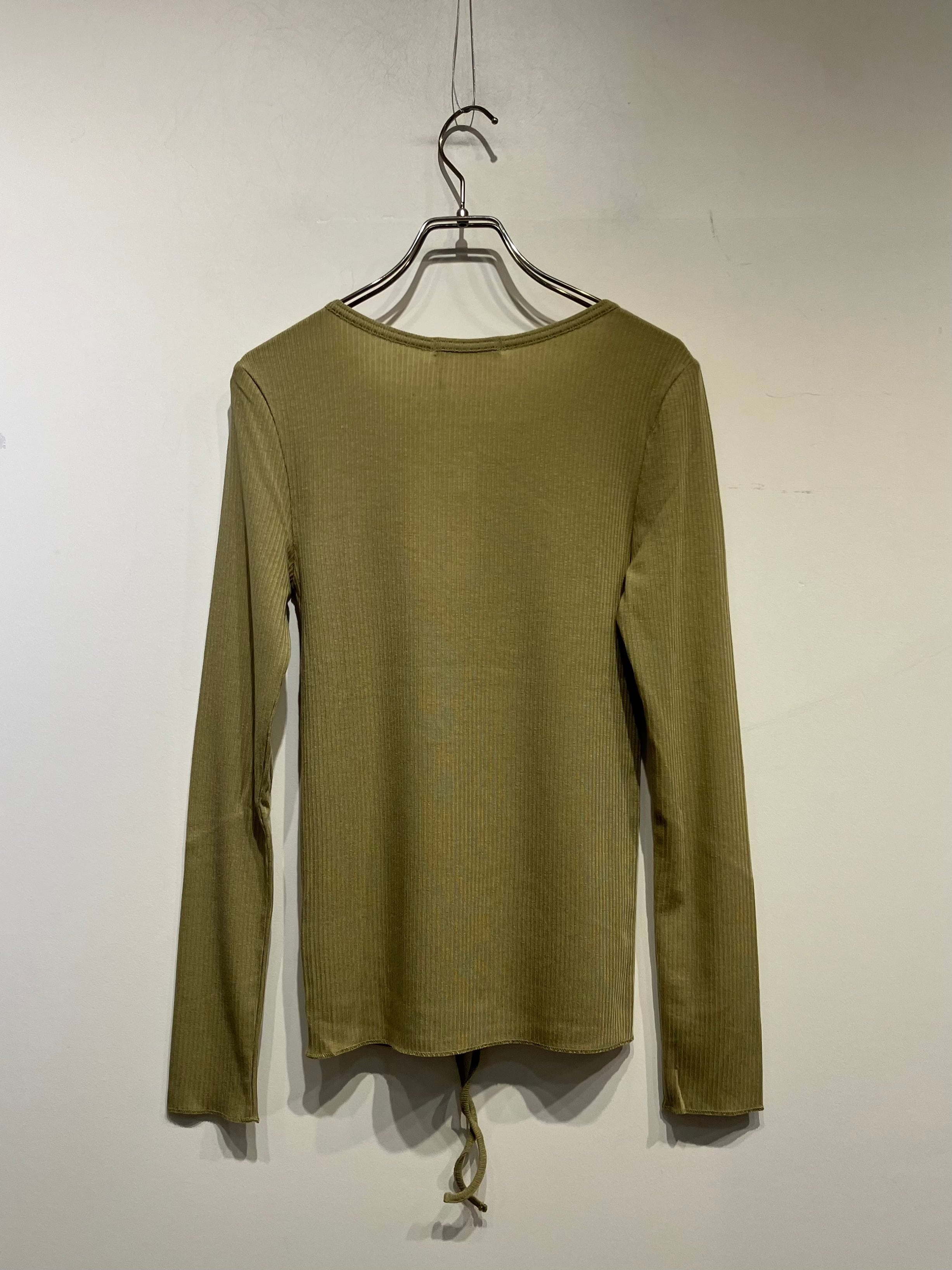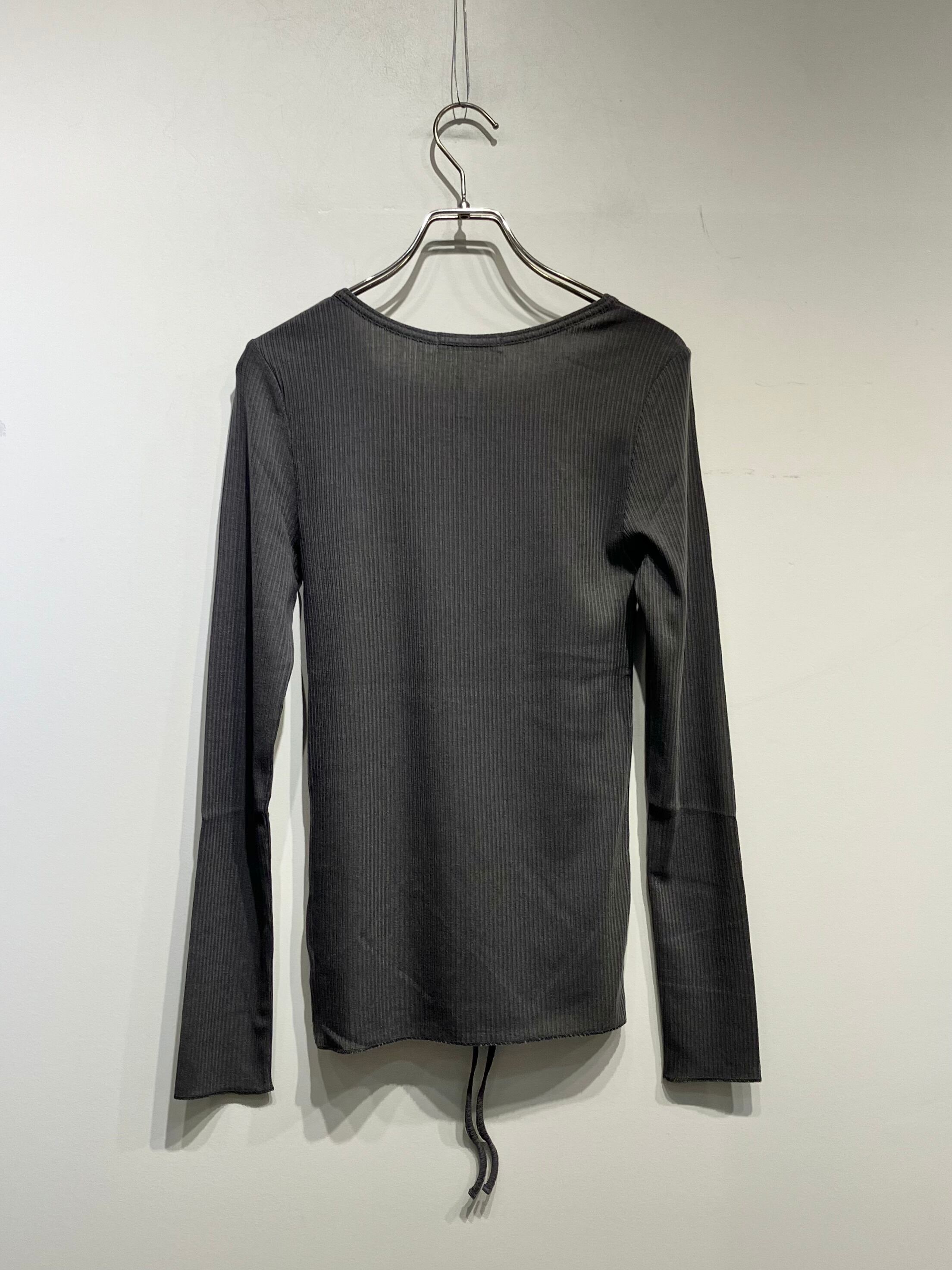 ヘルシーな印象を与えてくれるホルターネックストラップ付きのカットソー。カシミア/シルクが混紡された極上の肌触りのベロアテレコはリッチな風合いで、心地良いストレッチ性も兼ね備えています。袖、裾はあえてラフにロック始末で仕上げました。コンパクトなシルエットでレイヤードスタイルにも取り入れやすく、ジャケットやカーディガンのインナーとしても着映えします。