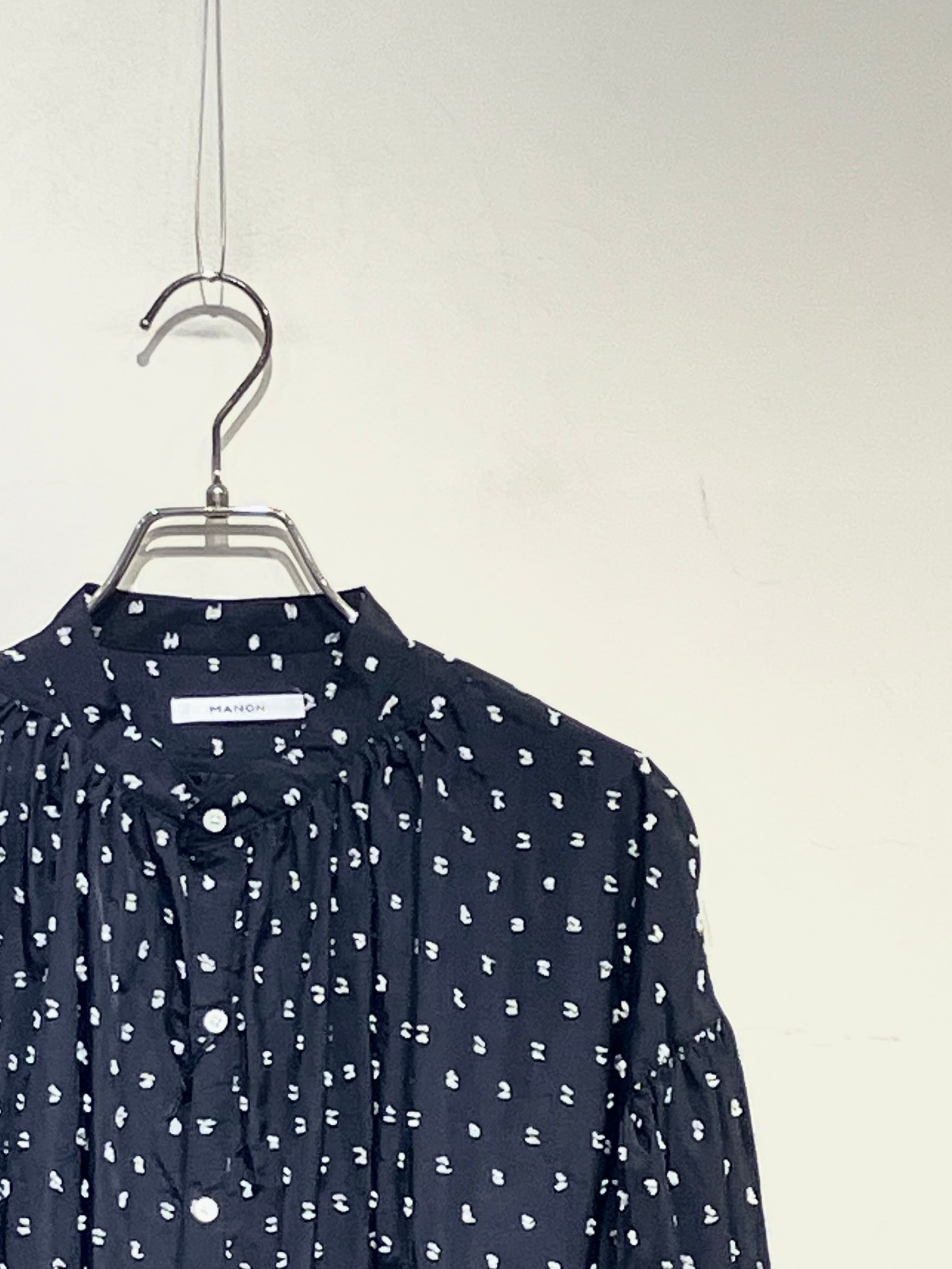 衿周りから後ろヨーク、袖口にたっぷりとギャザーを入れた