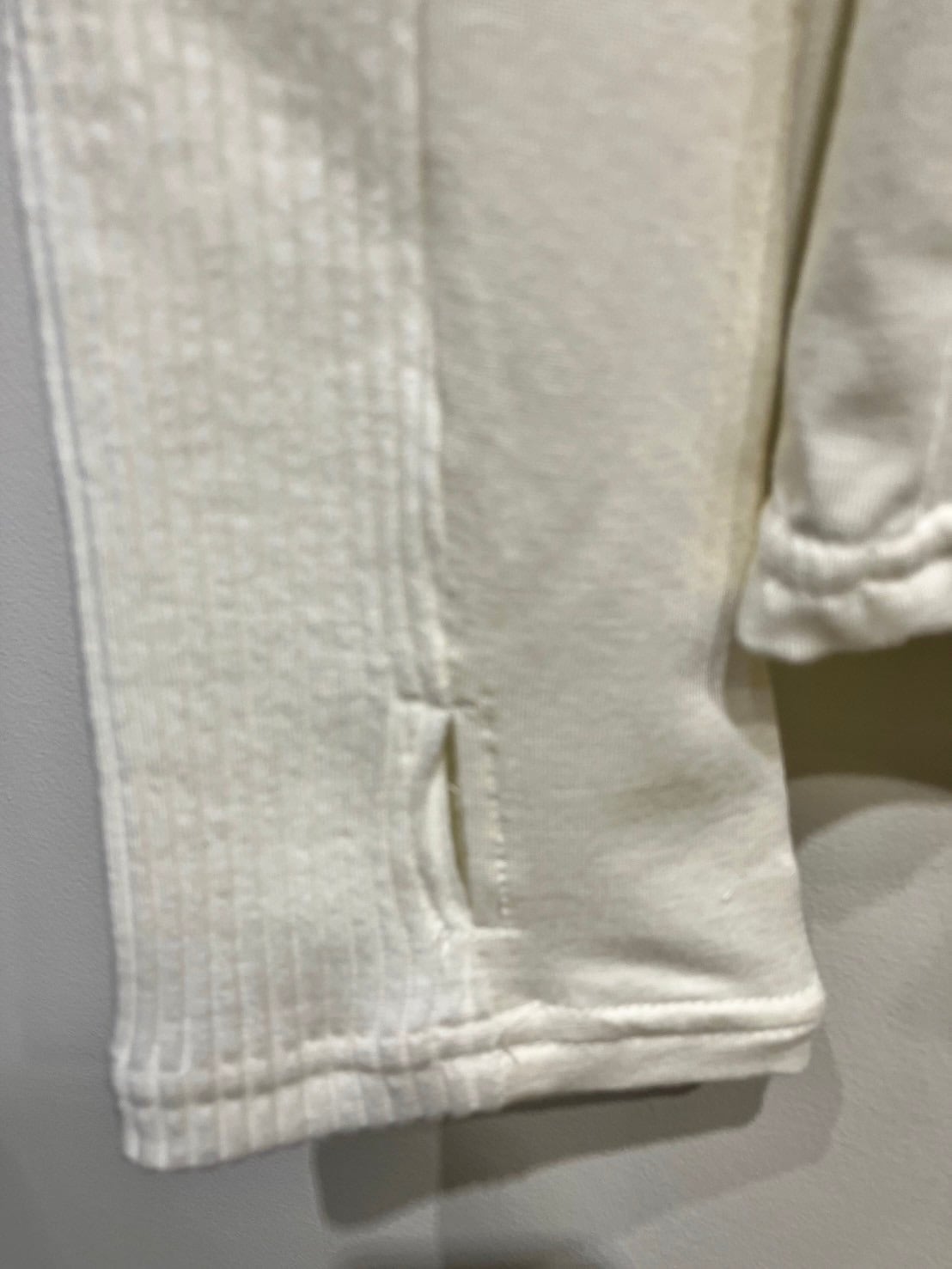 フロントのセンターシームと袖口のサムホールが程よいアクセントに。