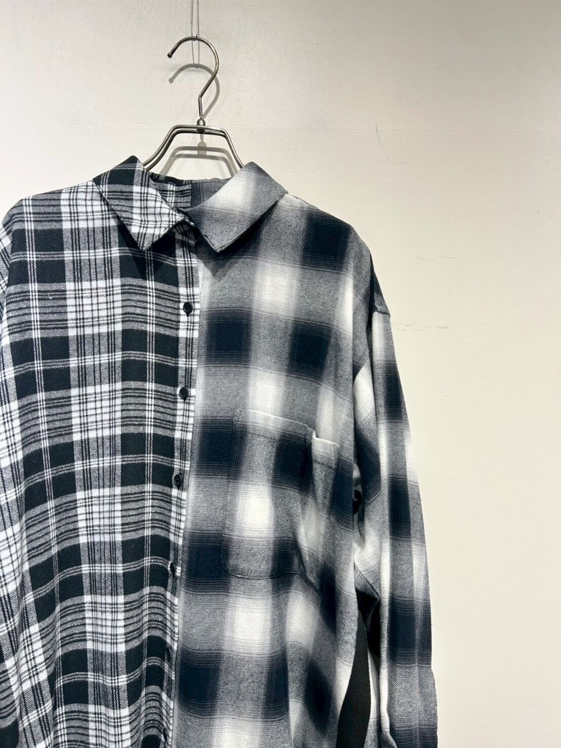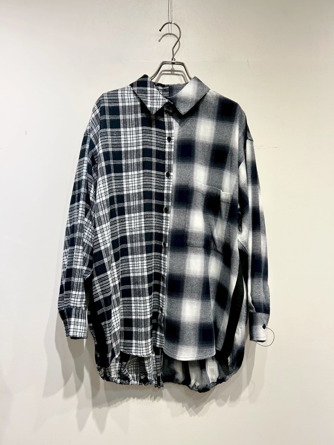 異なる2種類のチェック柄を絶妙に組み合わせた、目を惹くデザインシャツ。