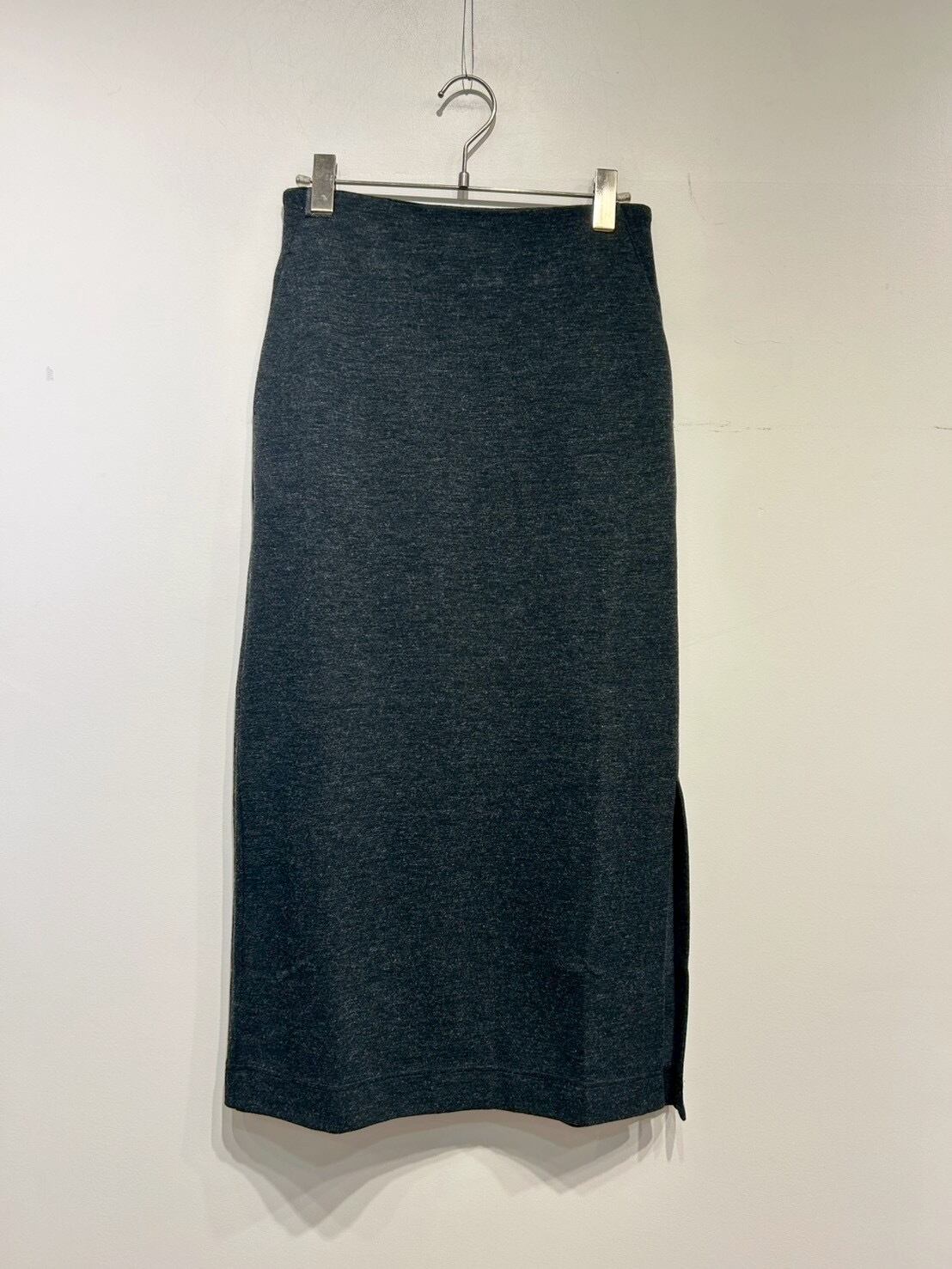 シンプルながら洗練された印象を与える、ポリエステル100%のロングスカート。