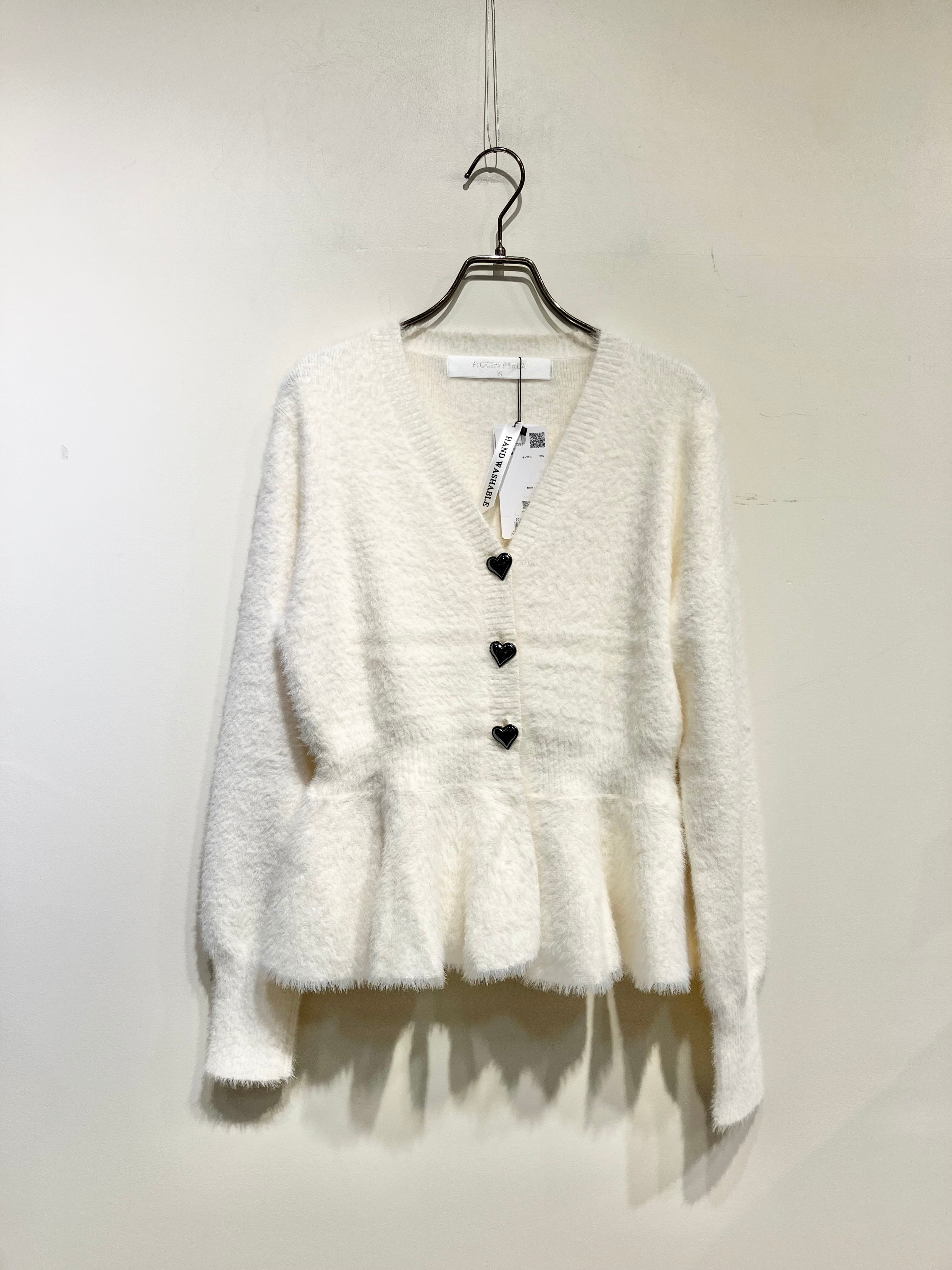 PICCIN ハートボタンペプラムシャギーカーディガン