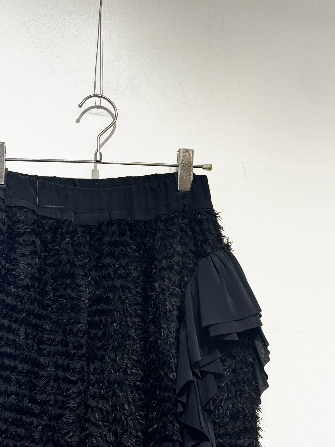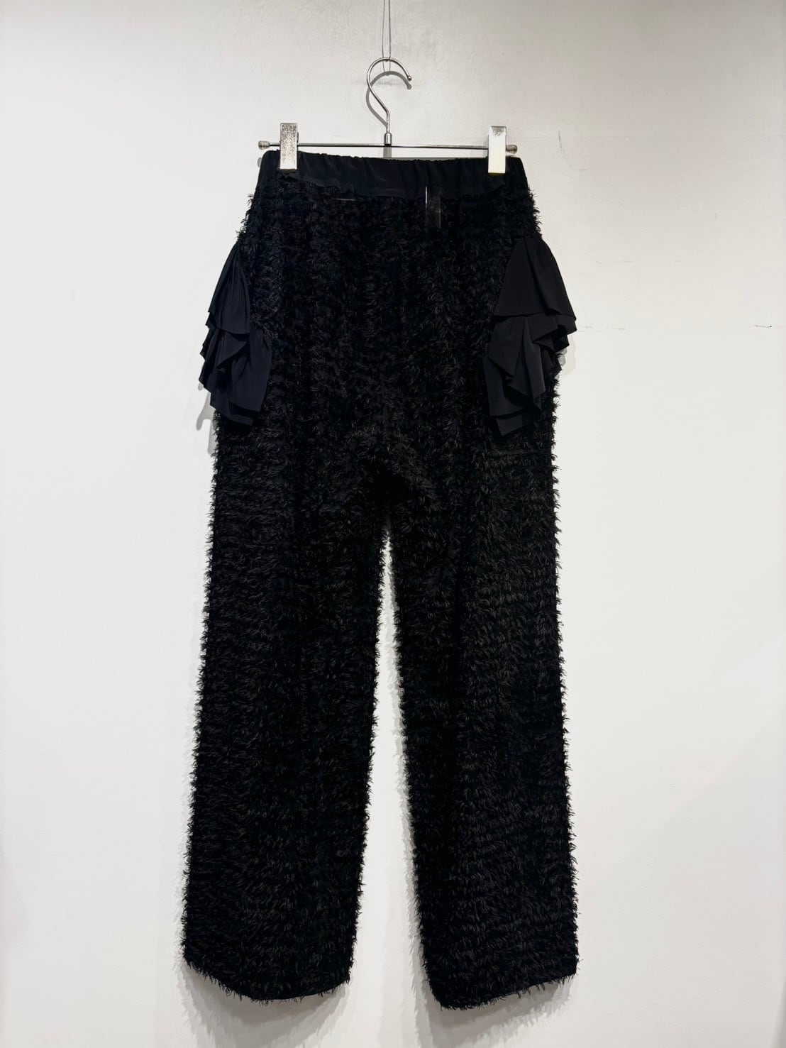 ポケットに付いたラッフルがモードで大人な印象の華やかさを演出するセミワイドパンツ。