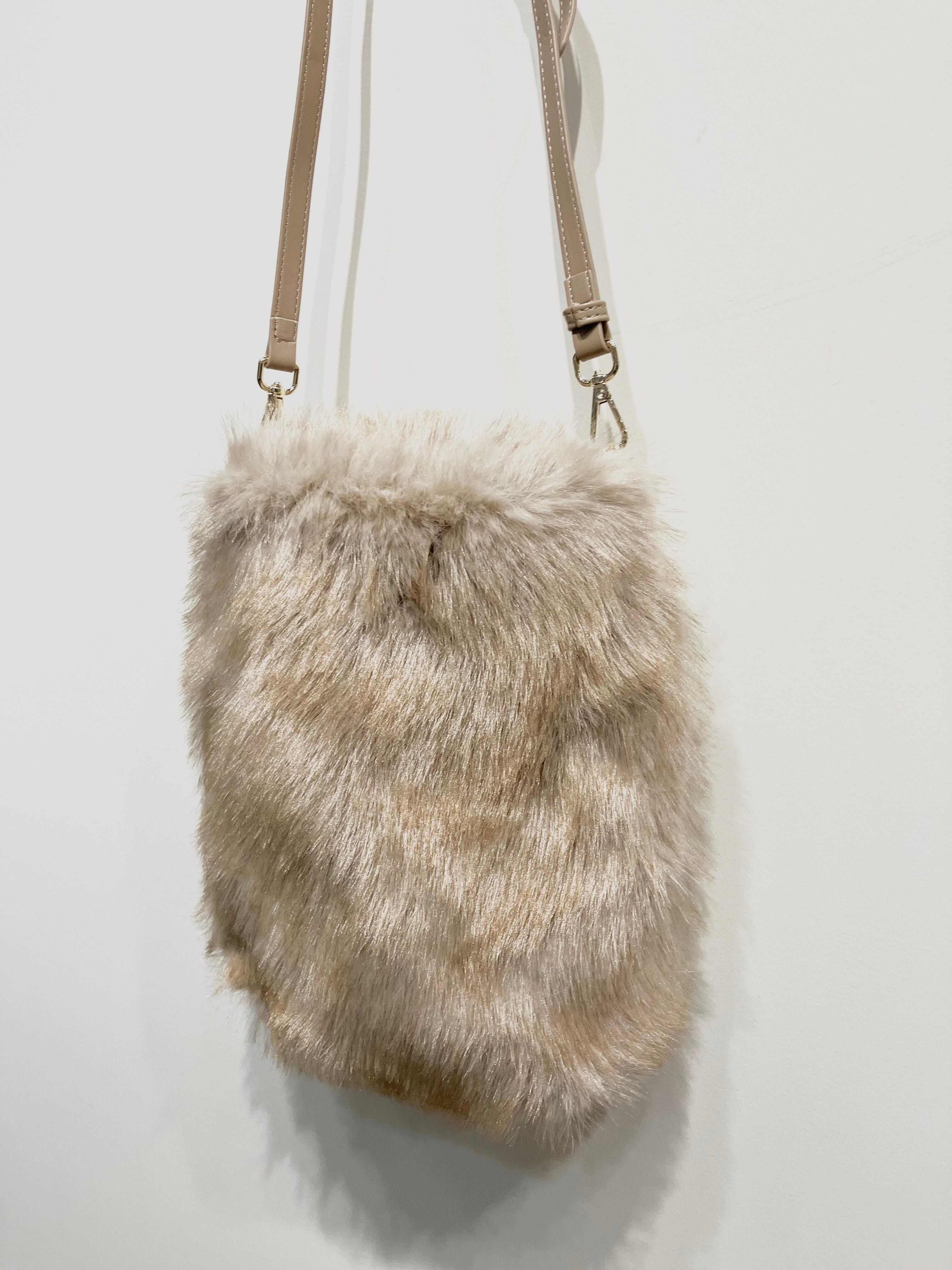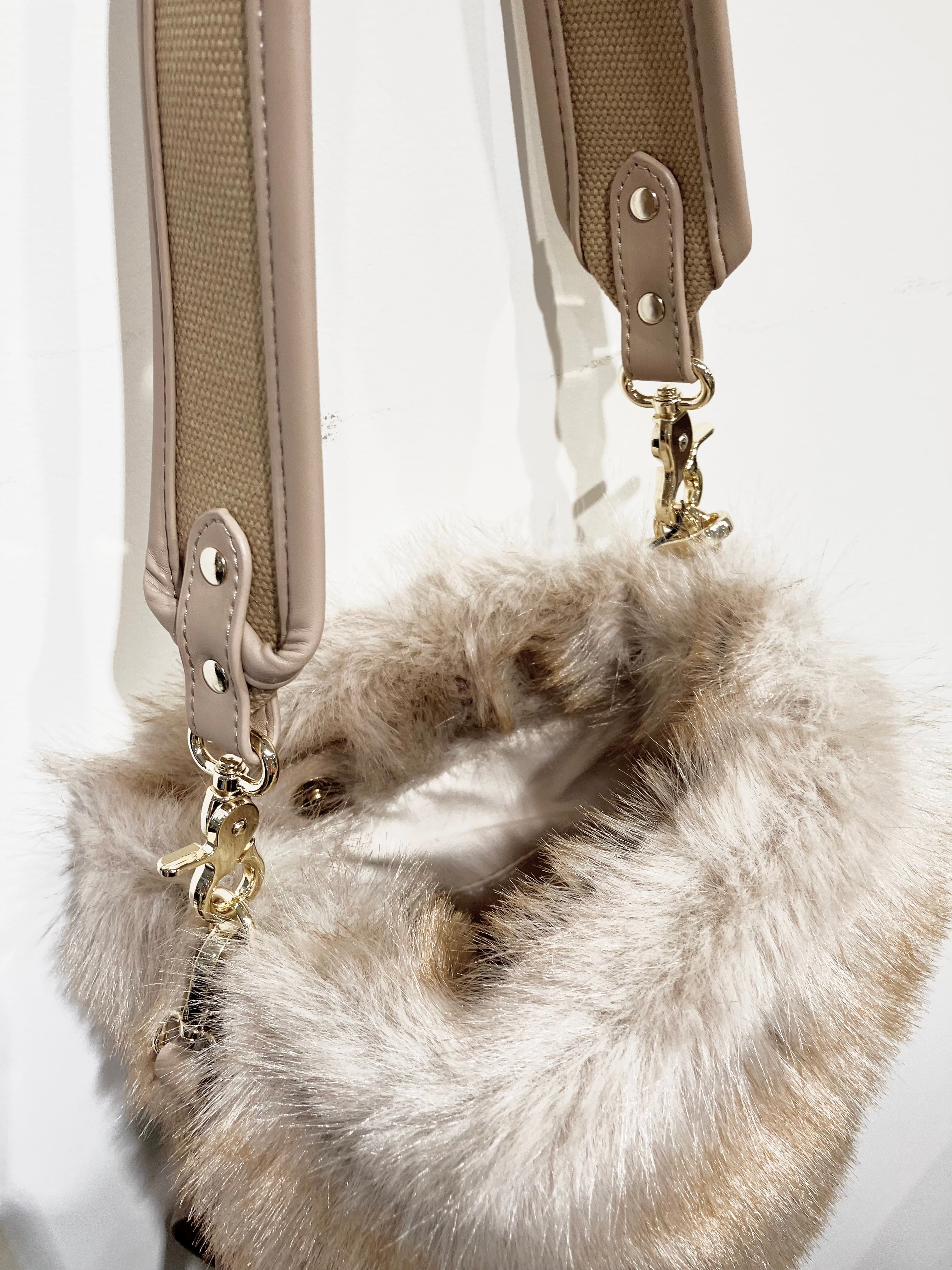 ふわふわの手触りが秋冬コーデにぴったりな、フェイクファー素材の2WAYバッグ。