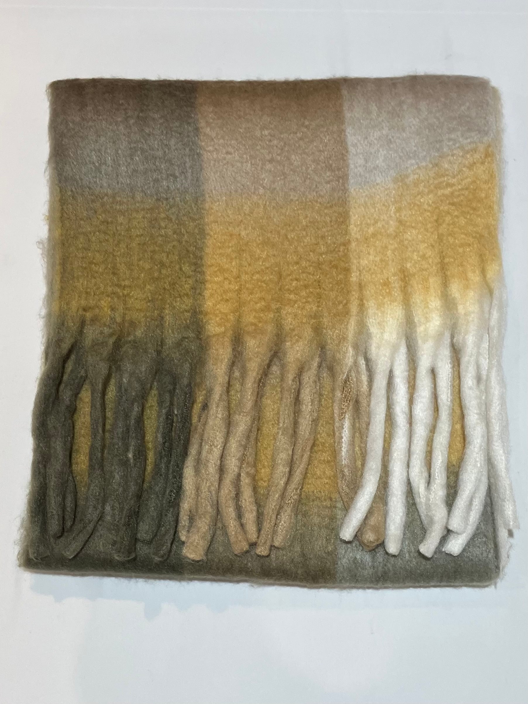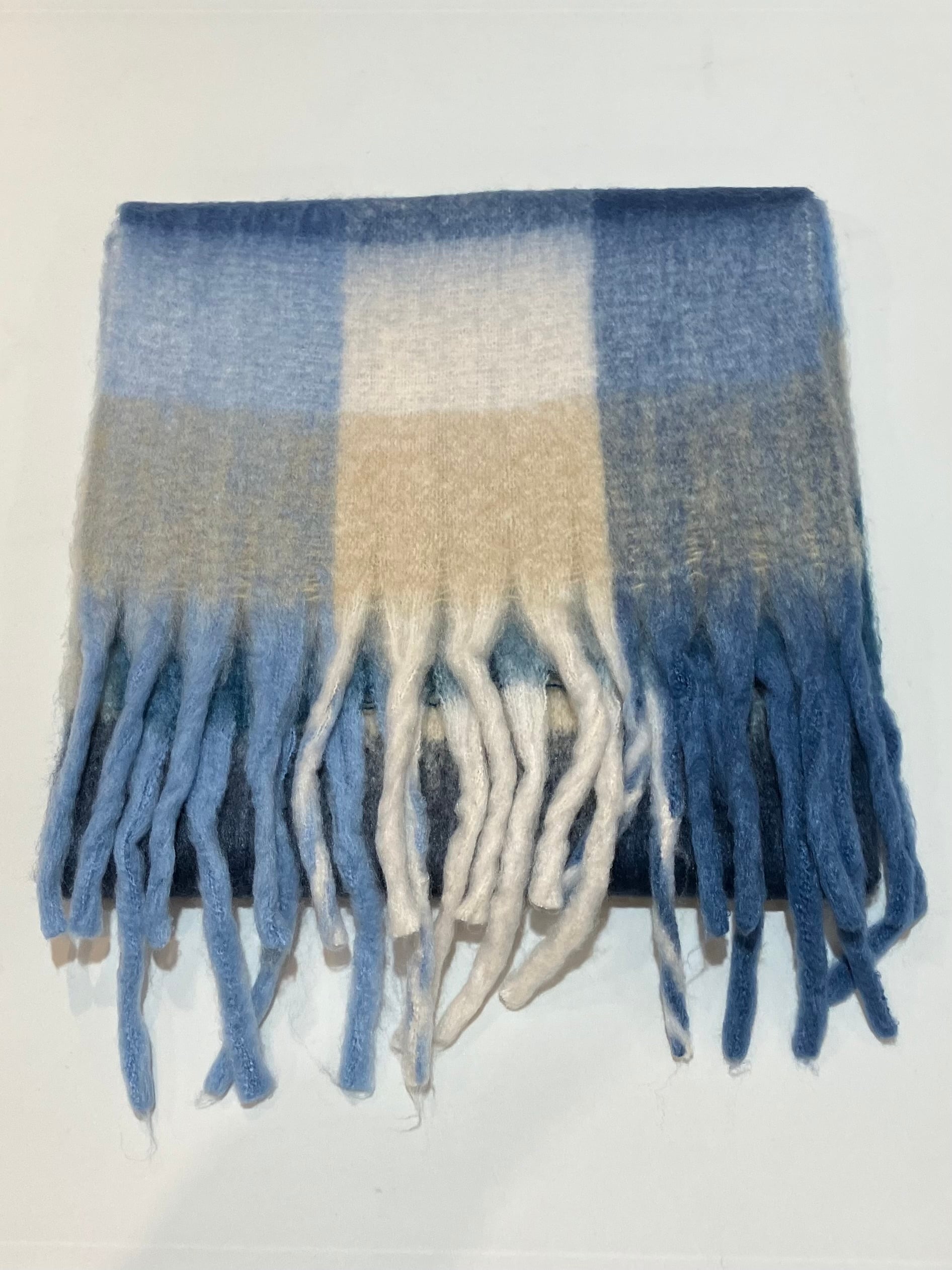 季節感のあるブロックチェック柄が目を引くマフラー。