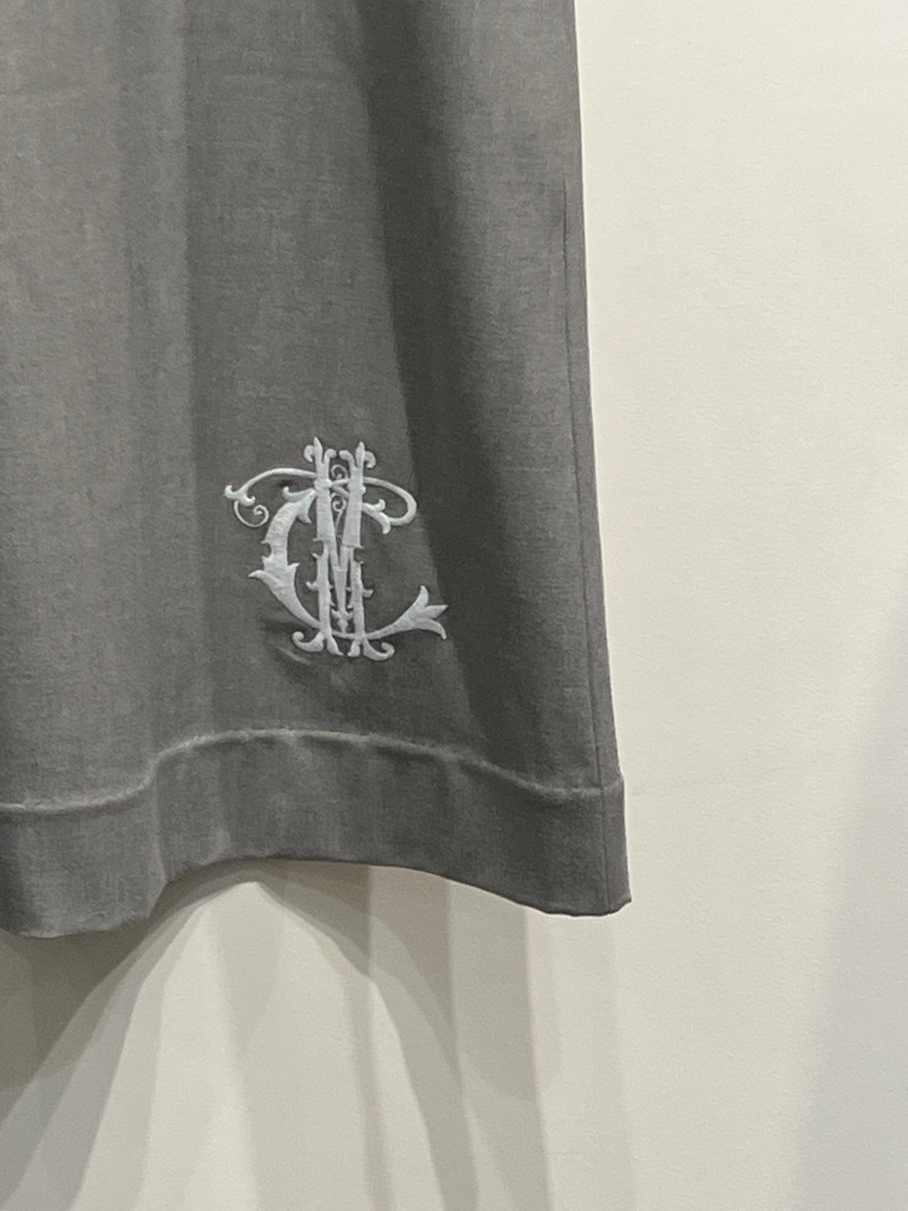 左裾にあしらわれたロゴ刺繍がさりげないアクセントになっています。