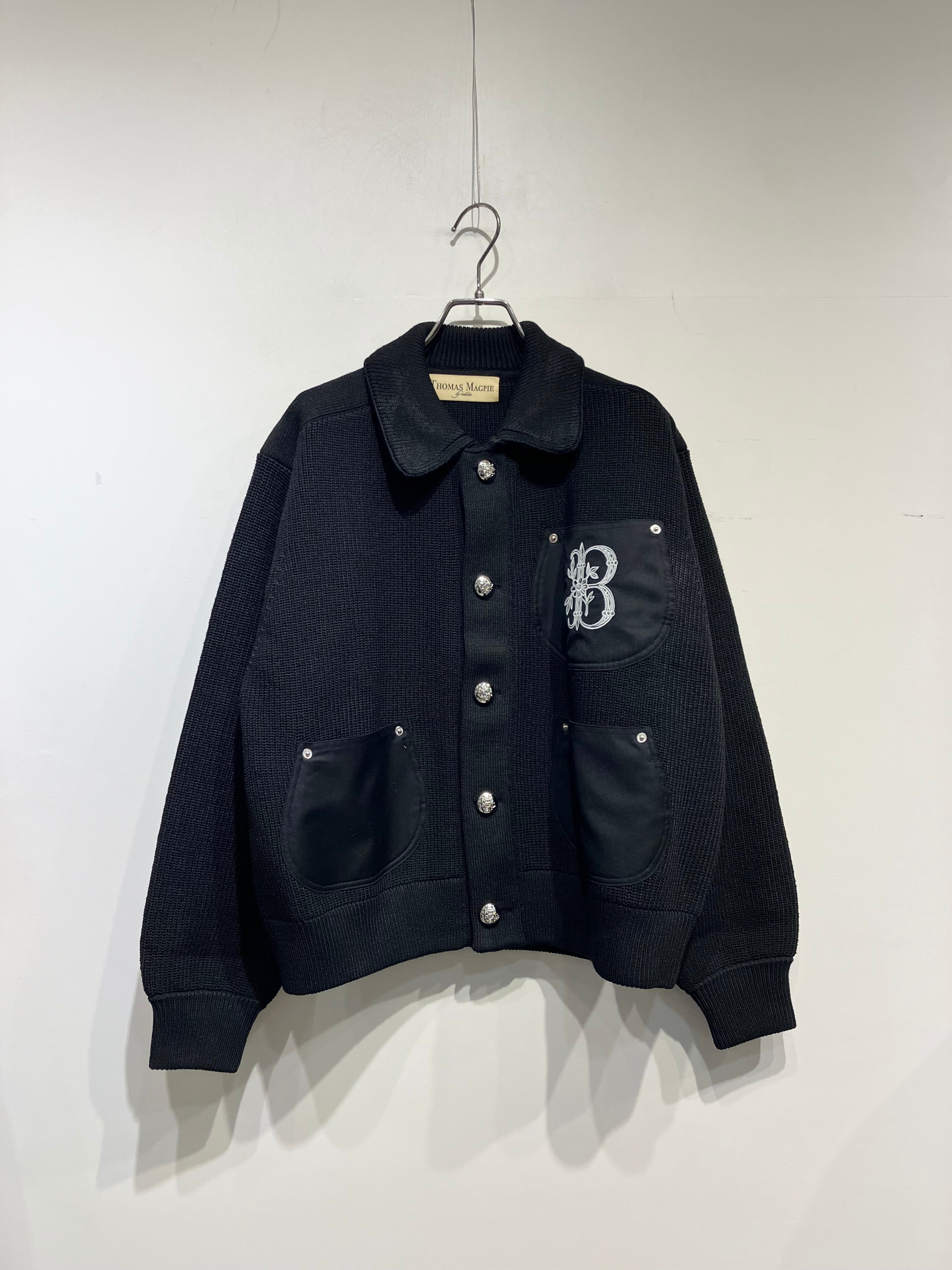 金ボタンが映える、布帛ポケット付きのニットジャケット。
