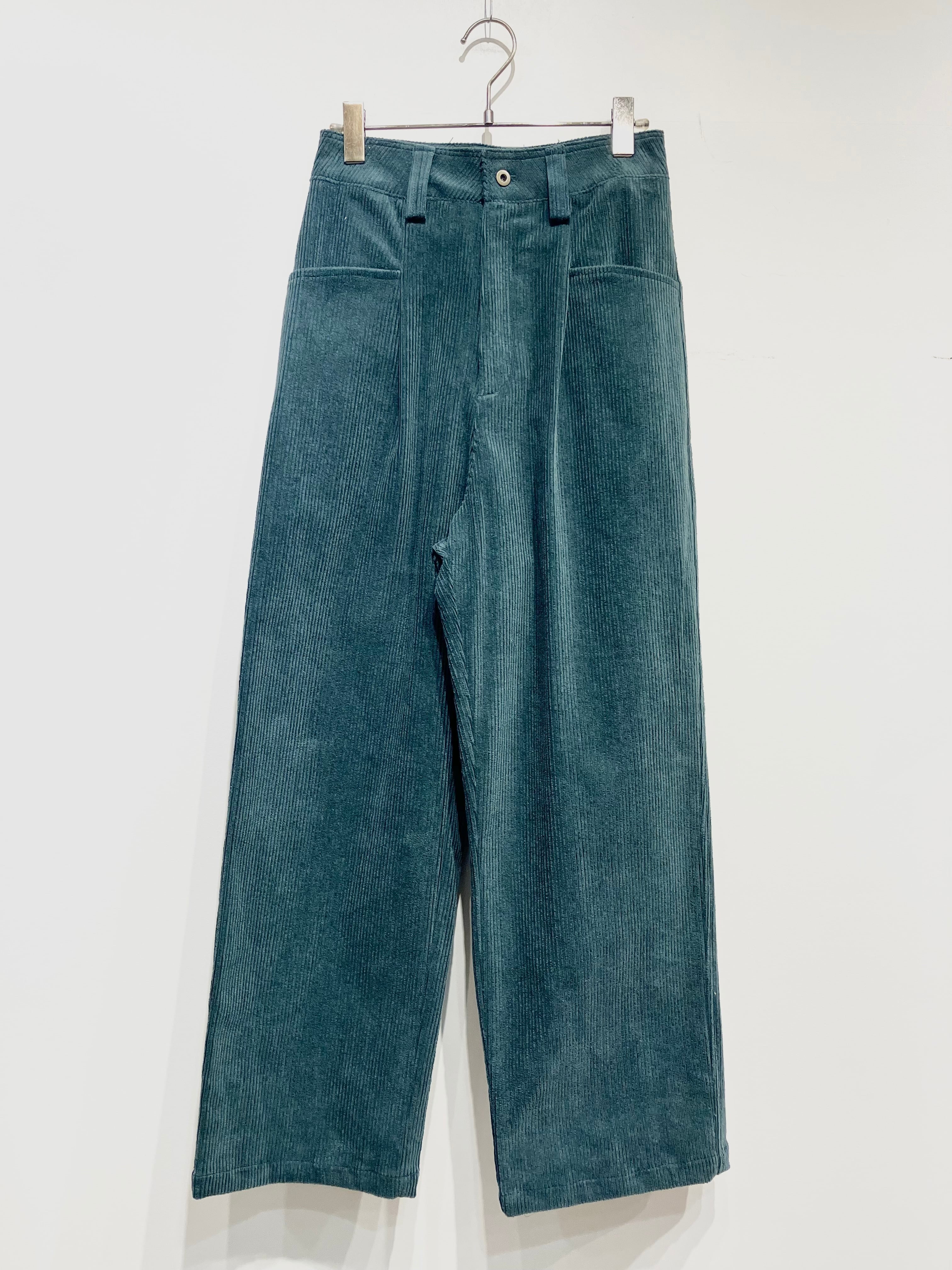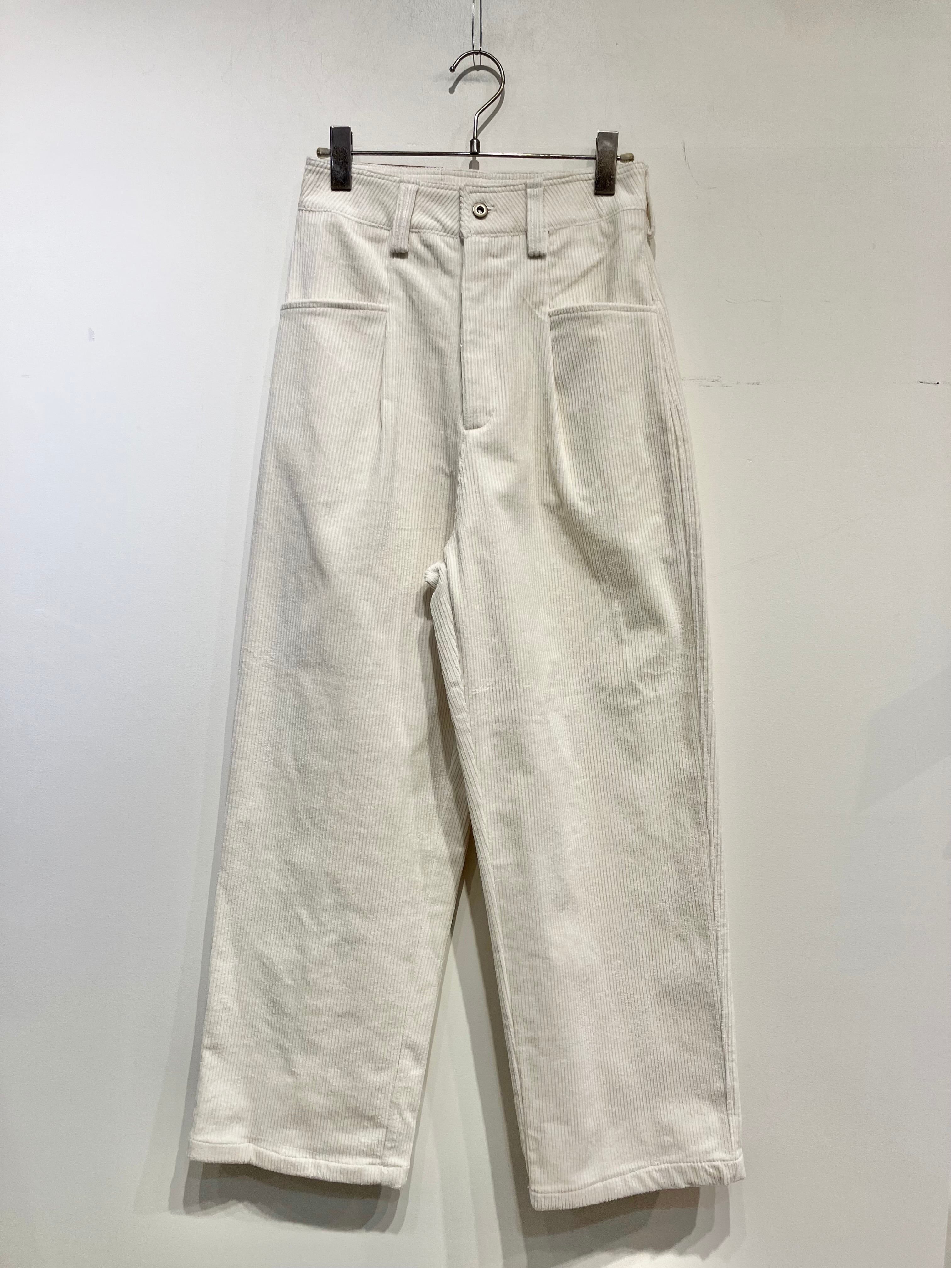 コーデュロイ素材が季節感漂うワイドパンツ。