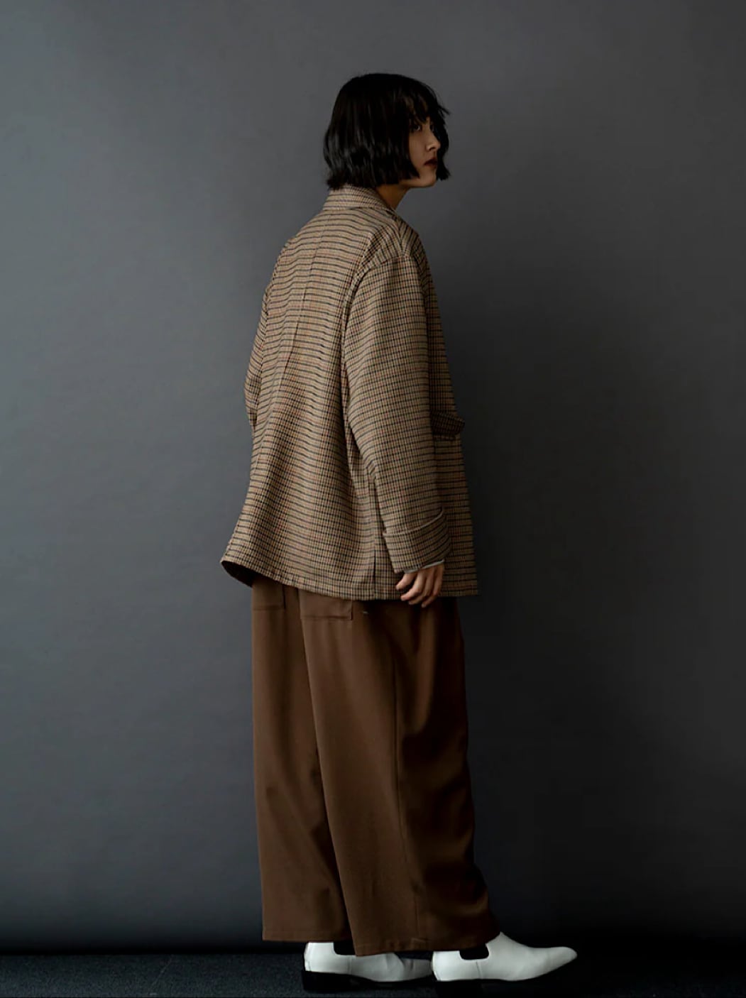 フロントは2つ釦で裾のスピンドルで緩いシルエットも楽しめてラフに着こなせるテーラードジャケットです。
