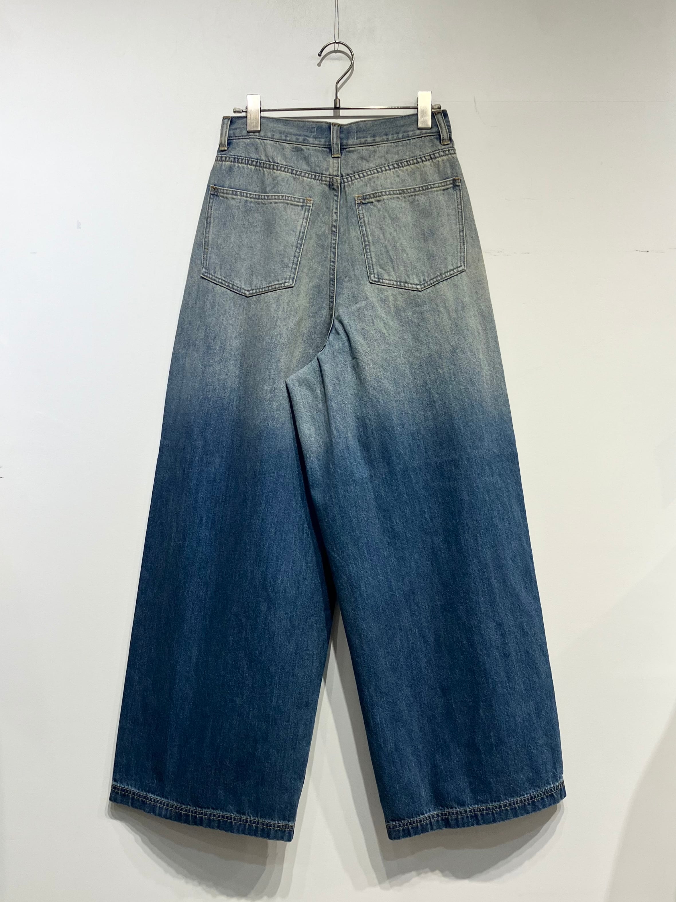 ほどよいヴィンテージ感とこなれた雰囲気を演出する、グラデーションデニムワイドパンツ。