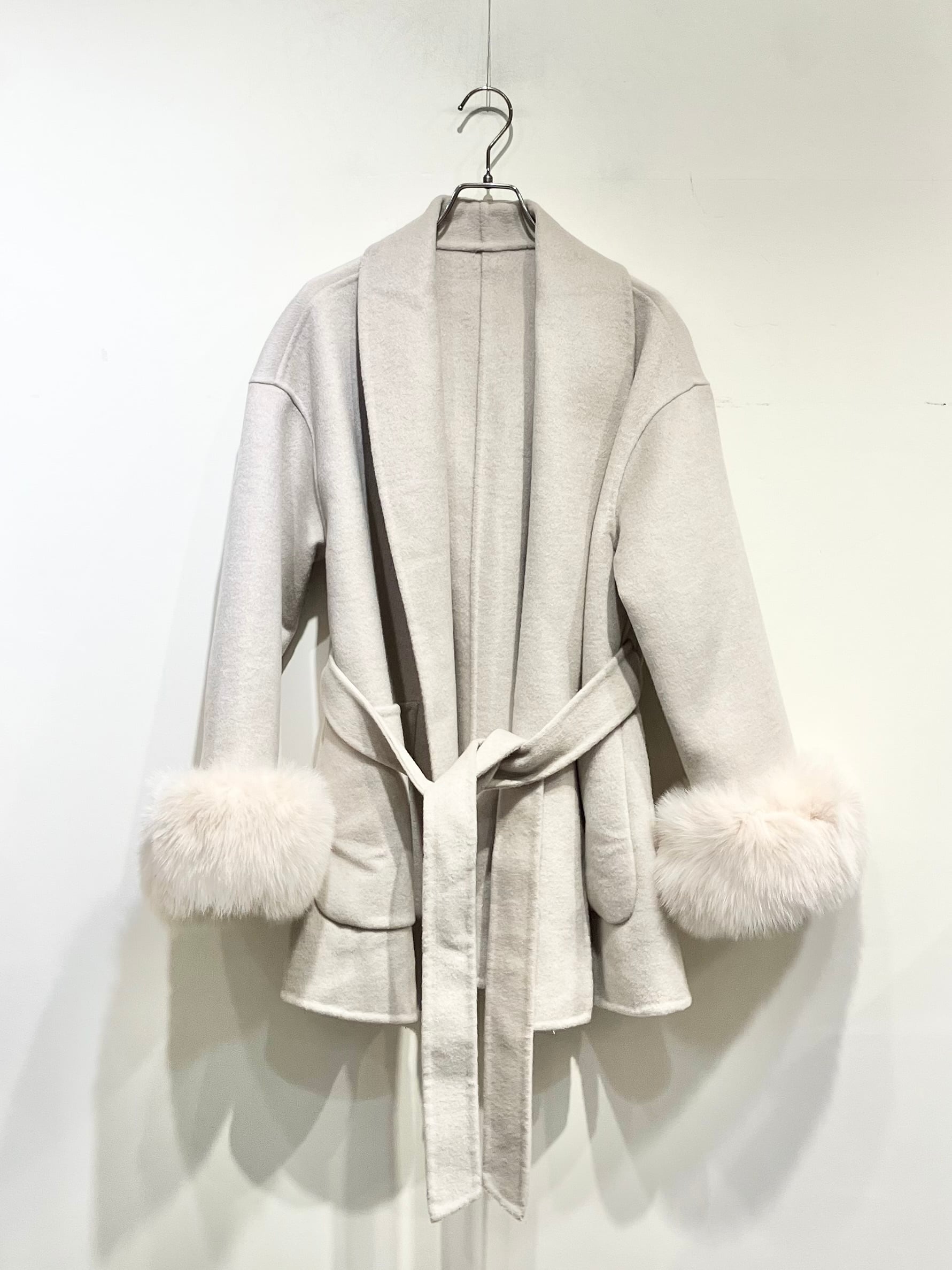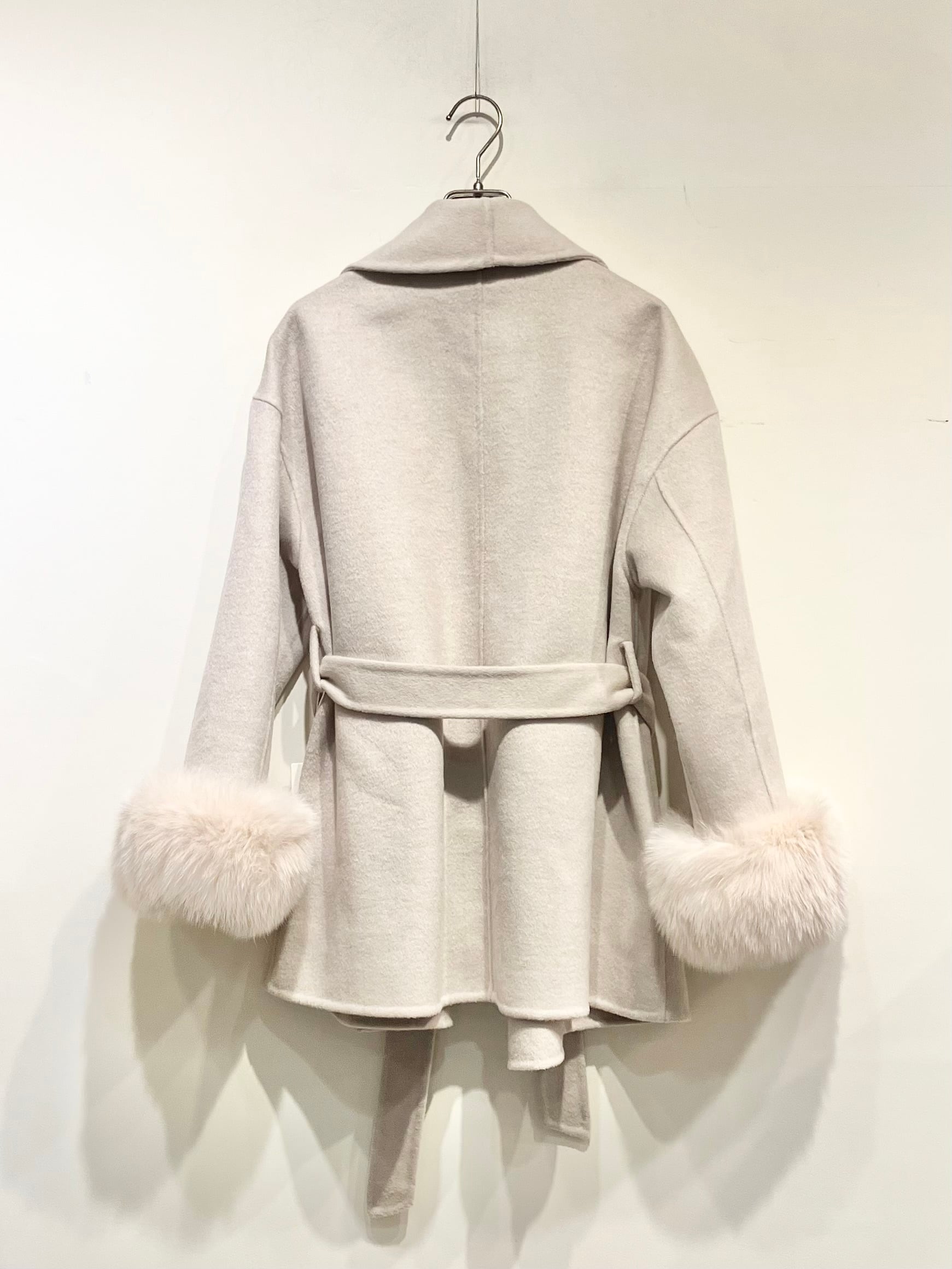 袖口のフォックスファーがコーデを格上げする上品コート。