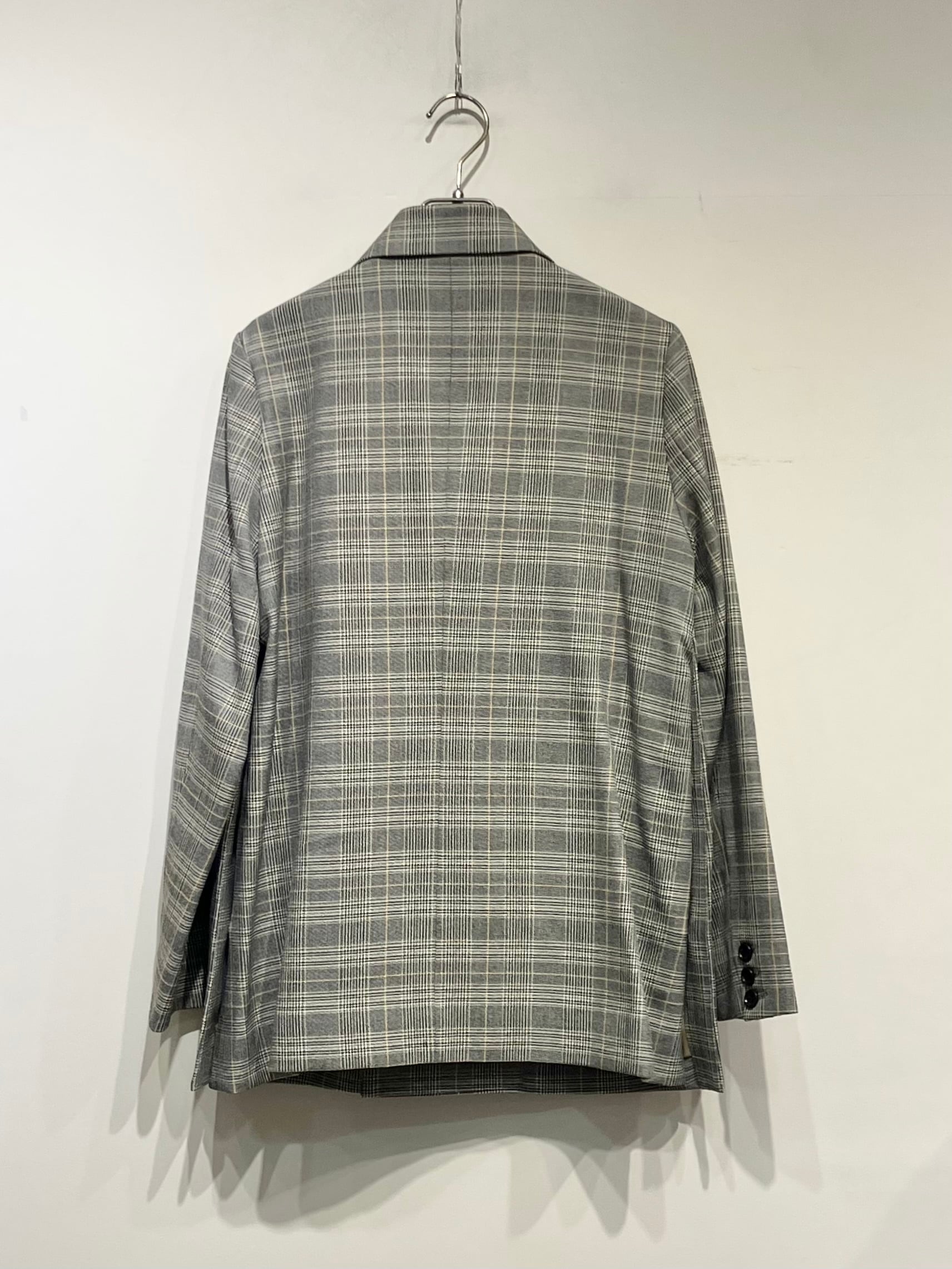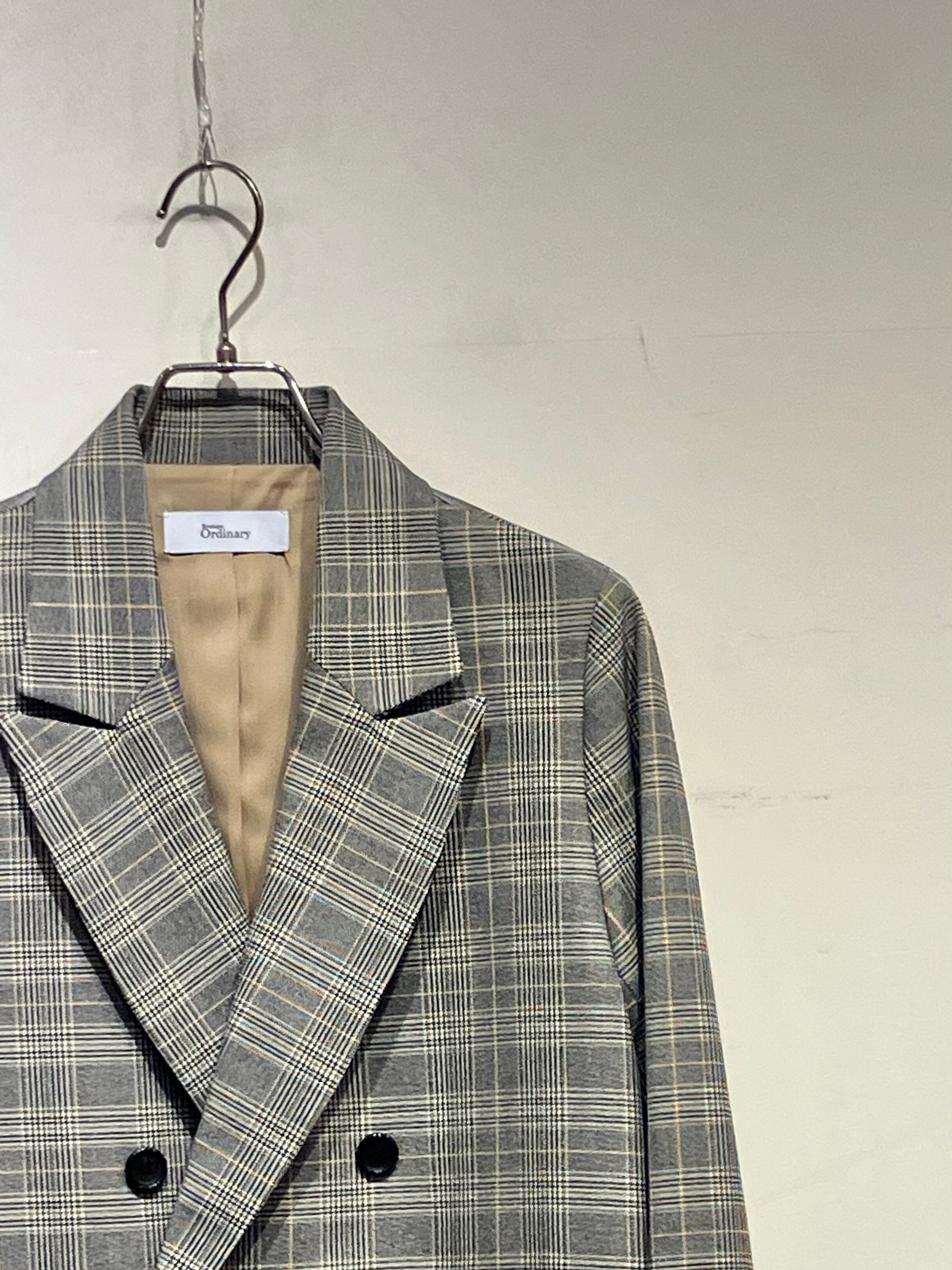 ボクシーで抜け感のあるシルエットのピークドラペルのダブルブレストジャケット。