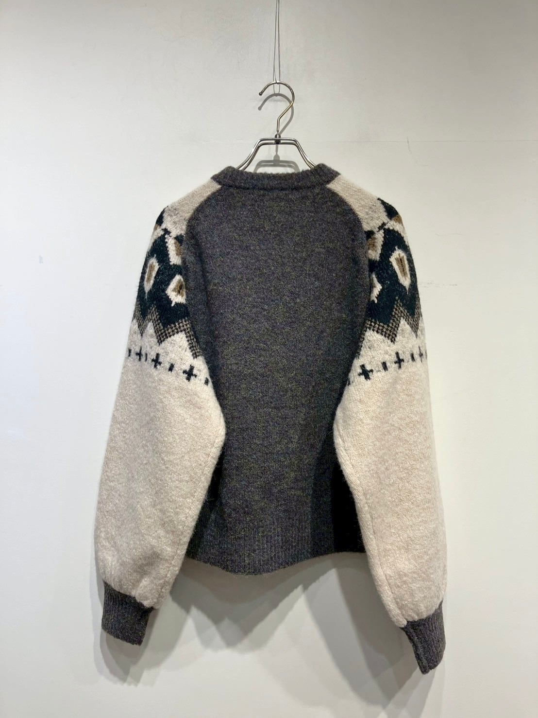 ニットのフェアアイル柄スリーブが印象的な、デザイン性の高いARMYジャケット。