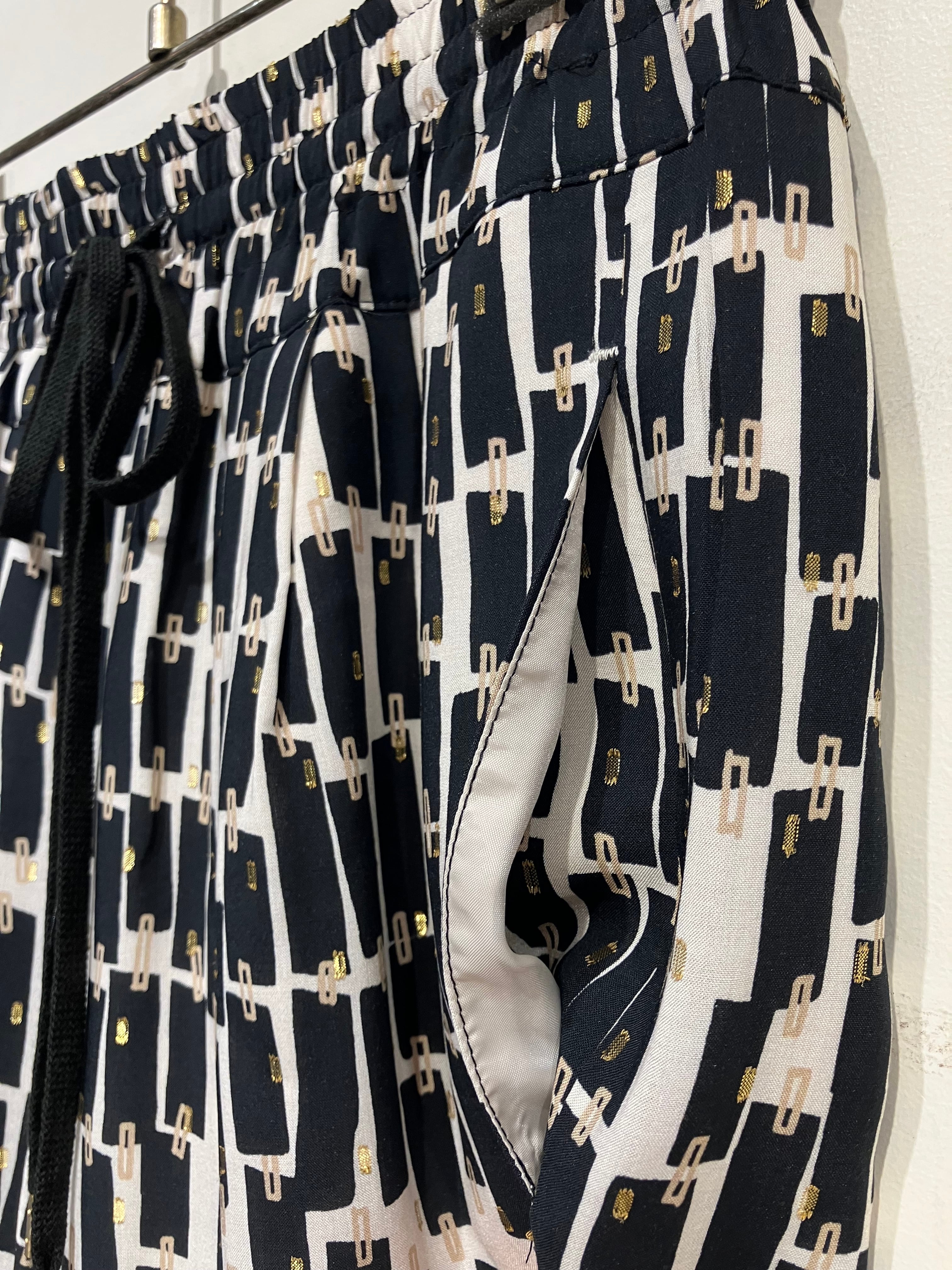 ゴムウエストですが、ギャザー量を控えめにしてヒップとウエストの差を少なくし、腰廻りの膨らみを抑えることで美脚なストンとしたクセの無いワイドシルエットに仕上がっています。