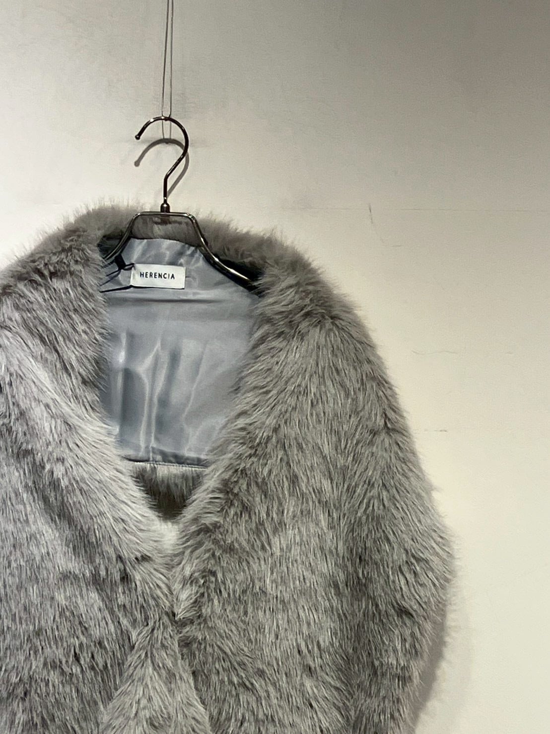 素材にはフェイクファーを使用しながらも、上質な毛並みと美しい光沢感を実現。裏地付きで肌あたりがなめらかで、着脱もしやすく仕上げました。デイリーから特別なシーンまで、コーディネートに品のある存在感を添える一枚です。