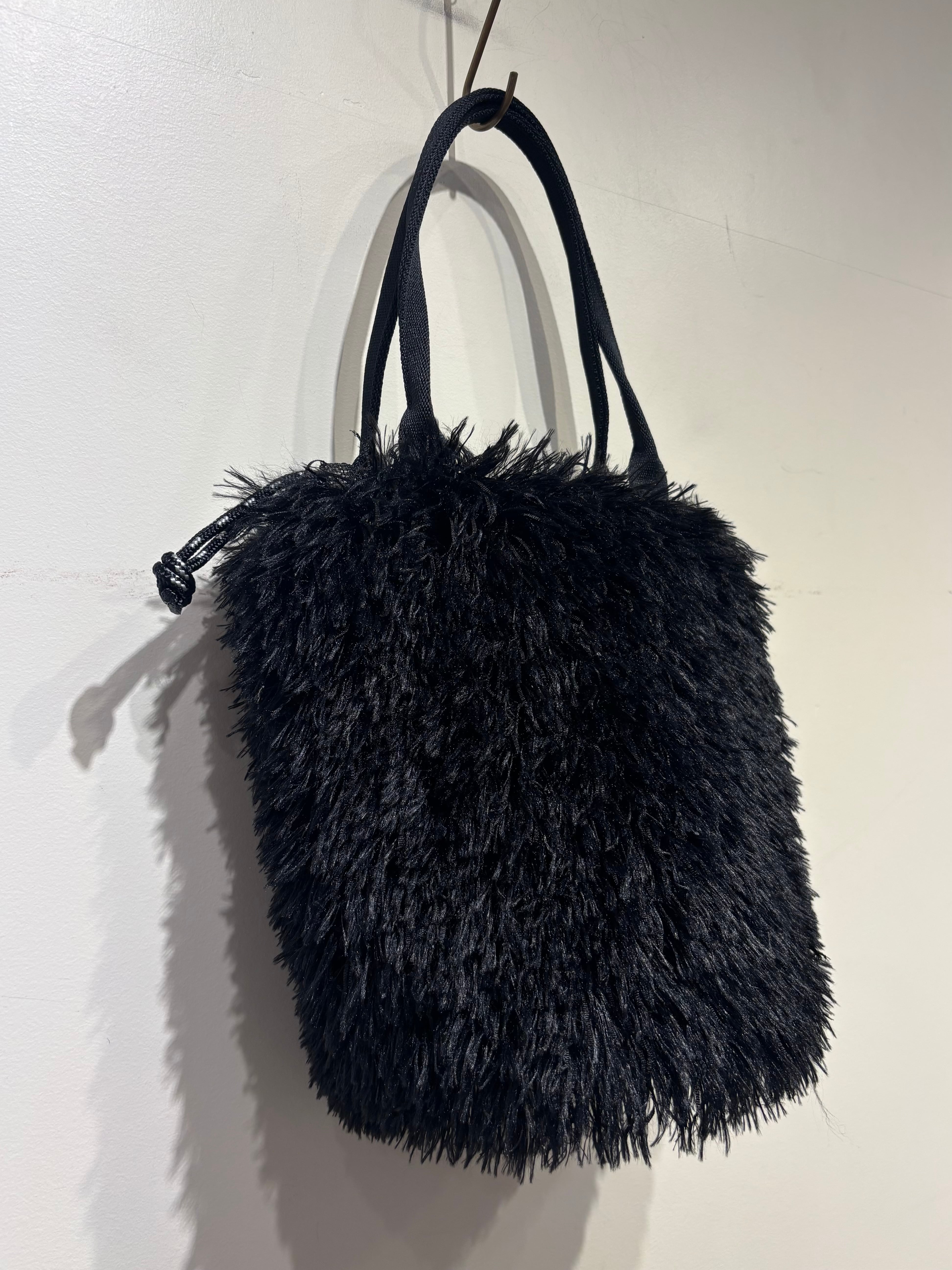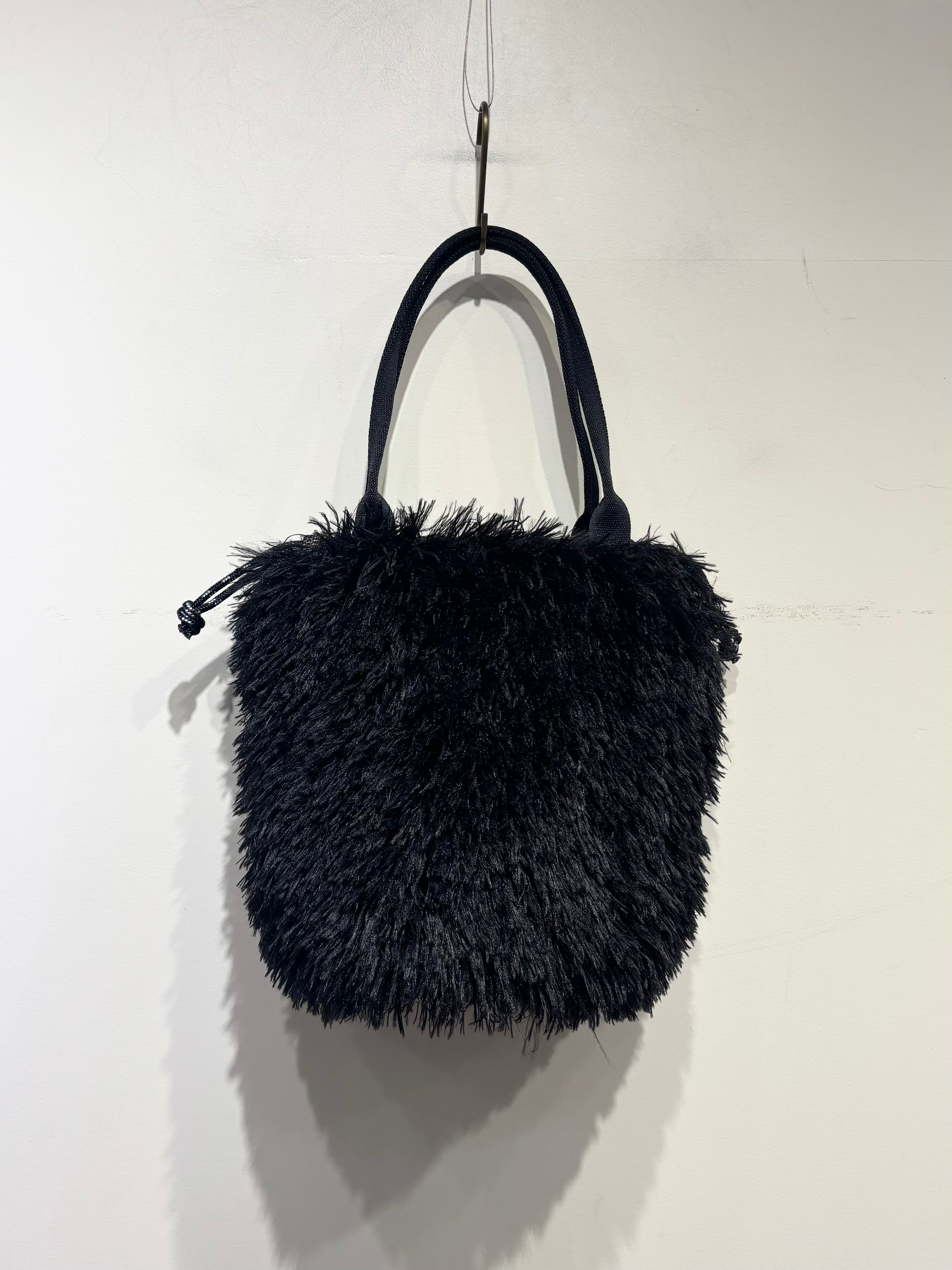 毛足のある素材感が目を引く存在感たっぷりのミニトートバッグ。