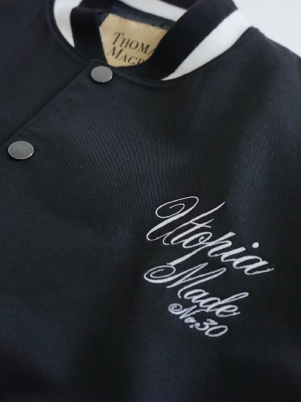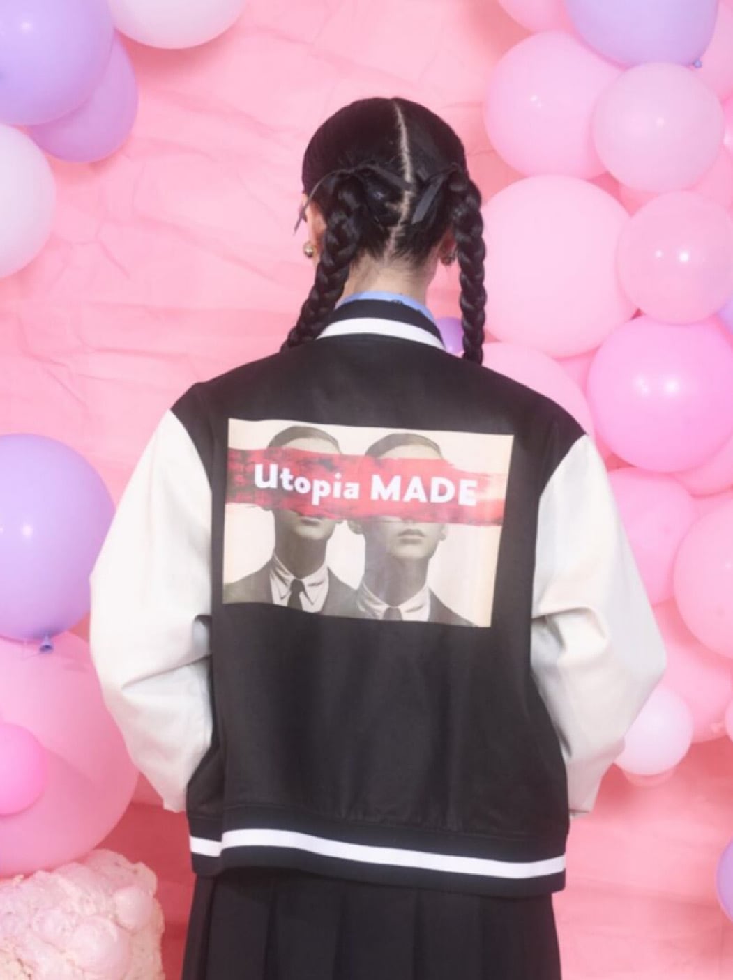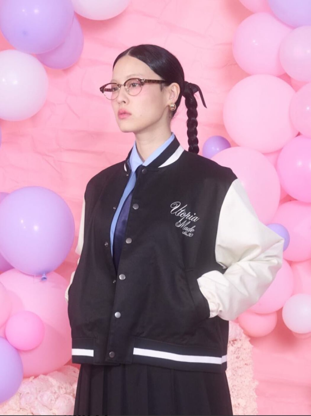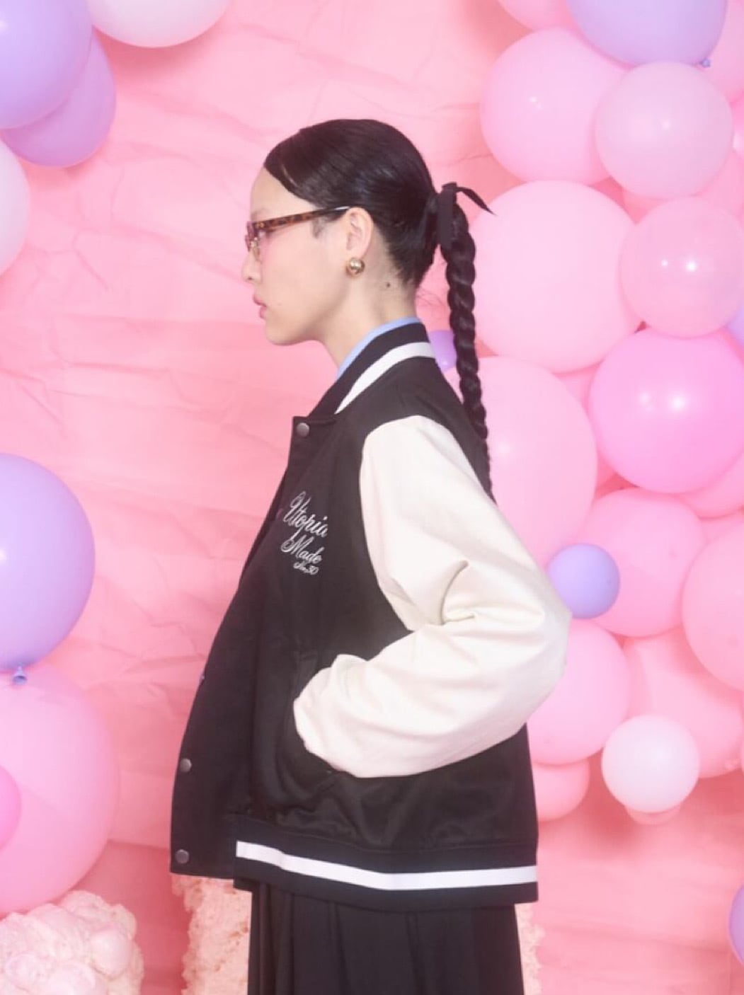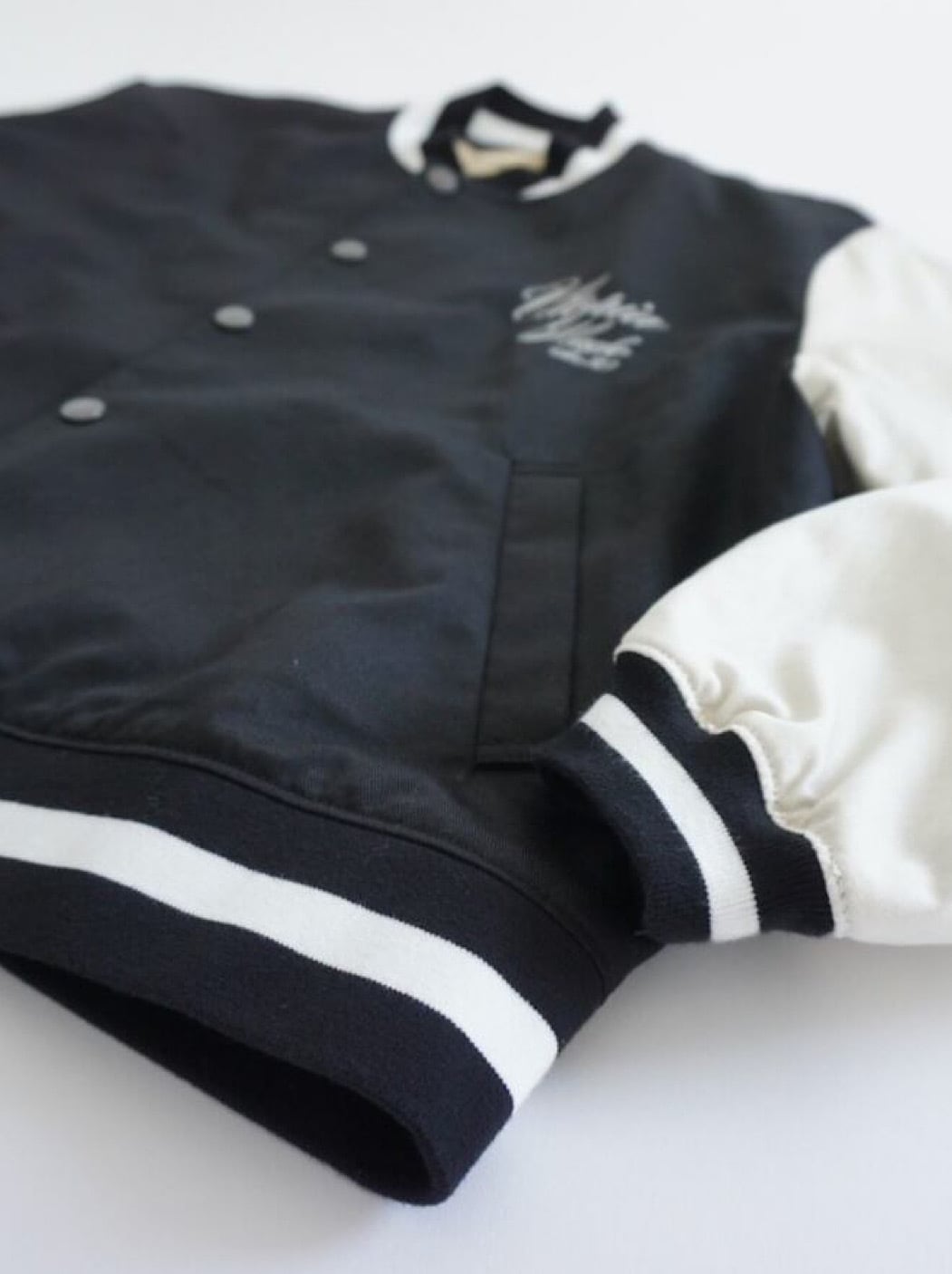 モノトーンを基調とした配色に、袖のコントラストが映え、ストリートにもモードにも馴染むデザイン。
