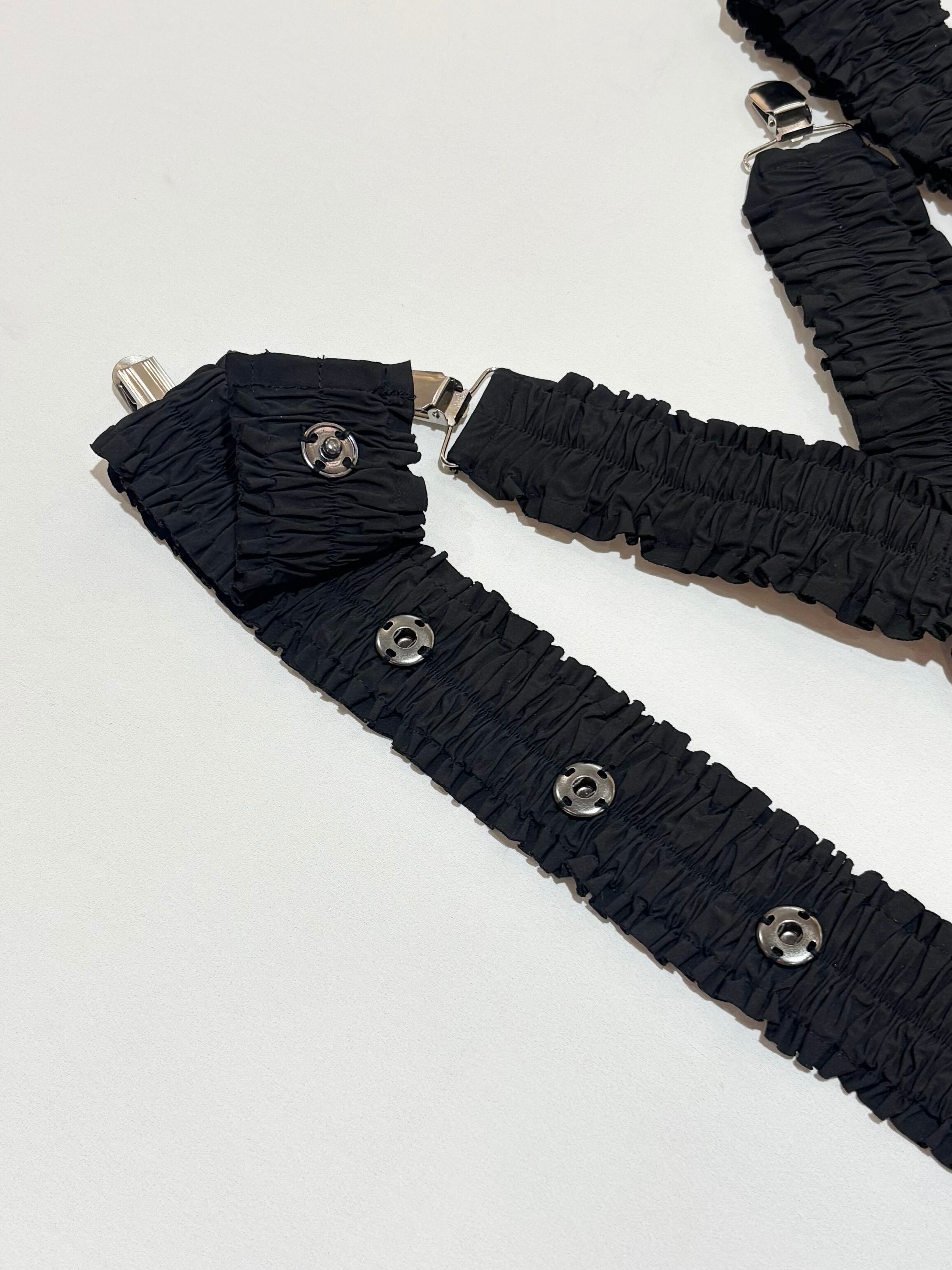 立体感と光沢感が美しいポリエステルタフタ素材のサスペンダーになります。