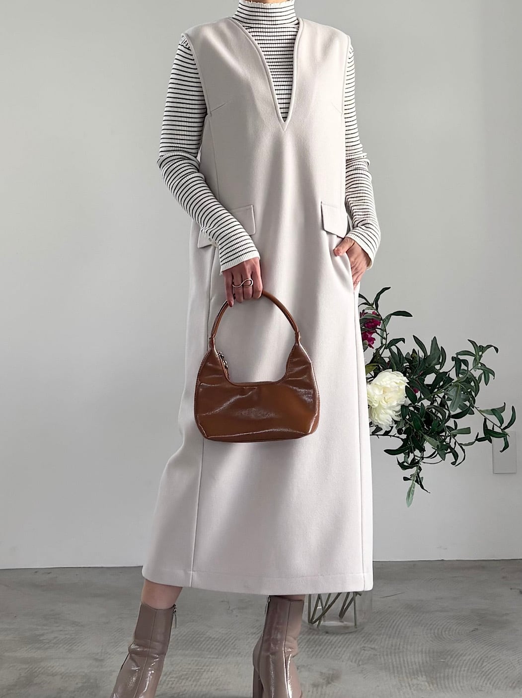 mink chair ウール調ジャージVネックジャンスカート