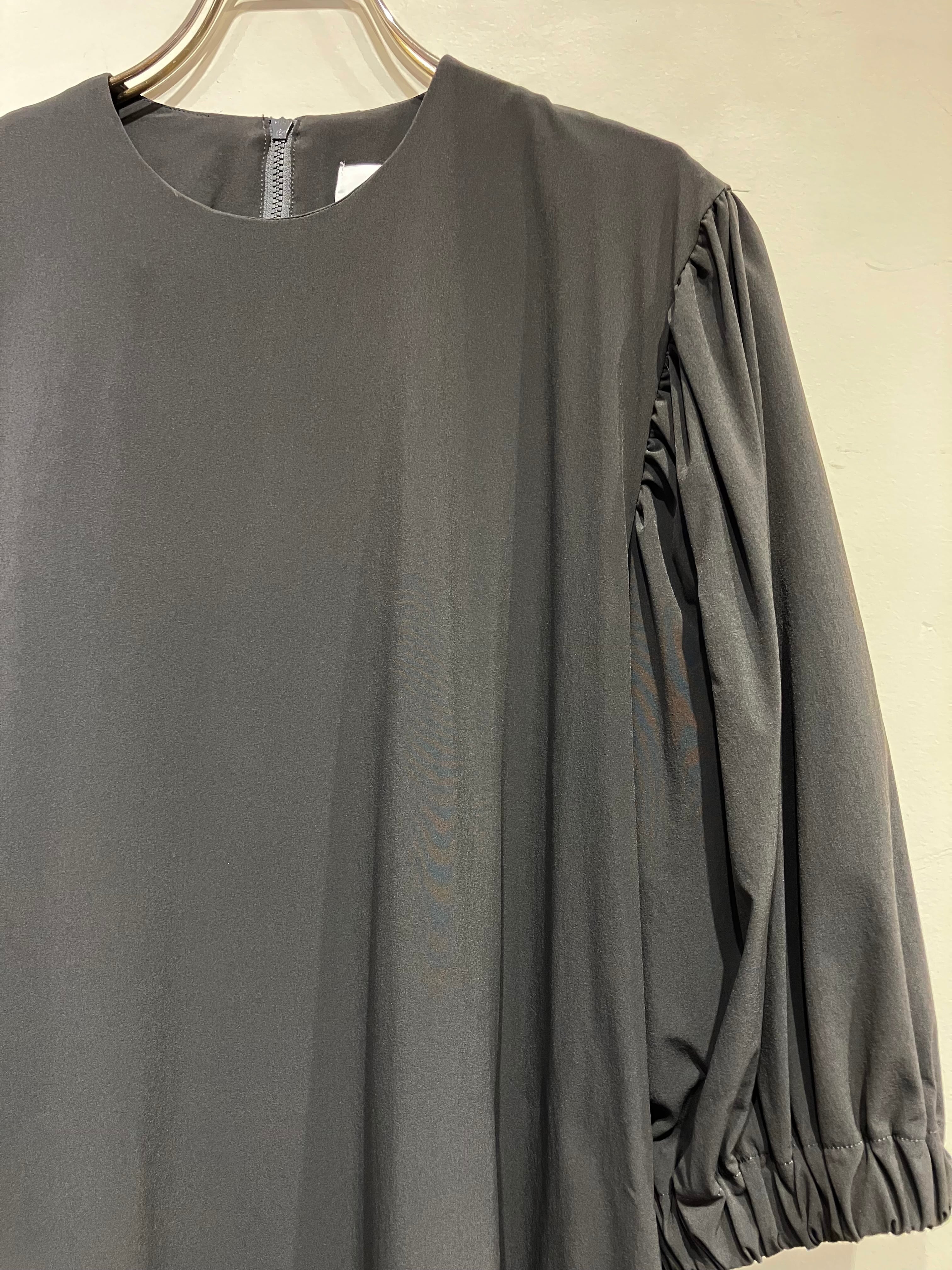 落ち感のある素材に、程よくボリュームを持たせたギャザースリーブが印象的なワンピース。