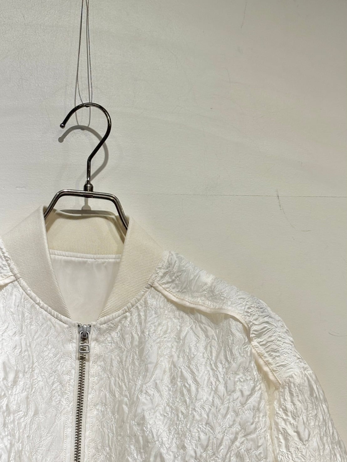 表情豊かな素材感と、裾にボリュームを持たせたバルーンシルエットが印象的なブルゾン。