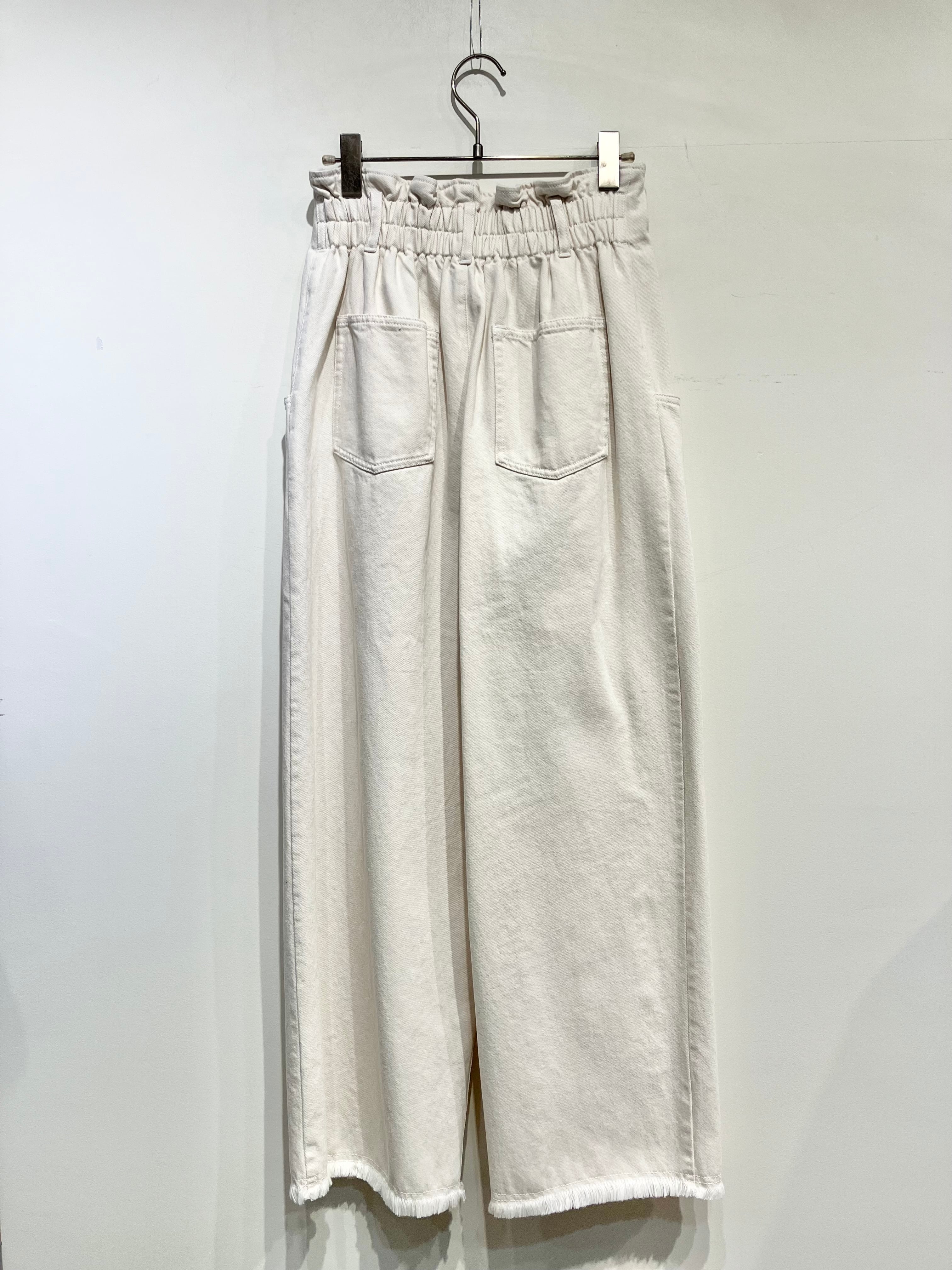 ウエストは前をすっきり、後ろはゴム+ミニフリルでタックインが