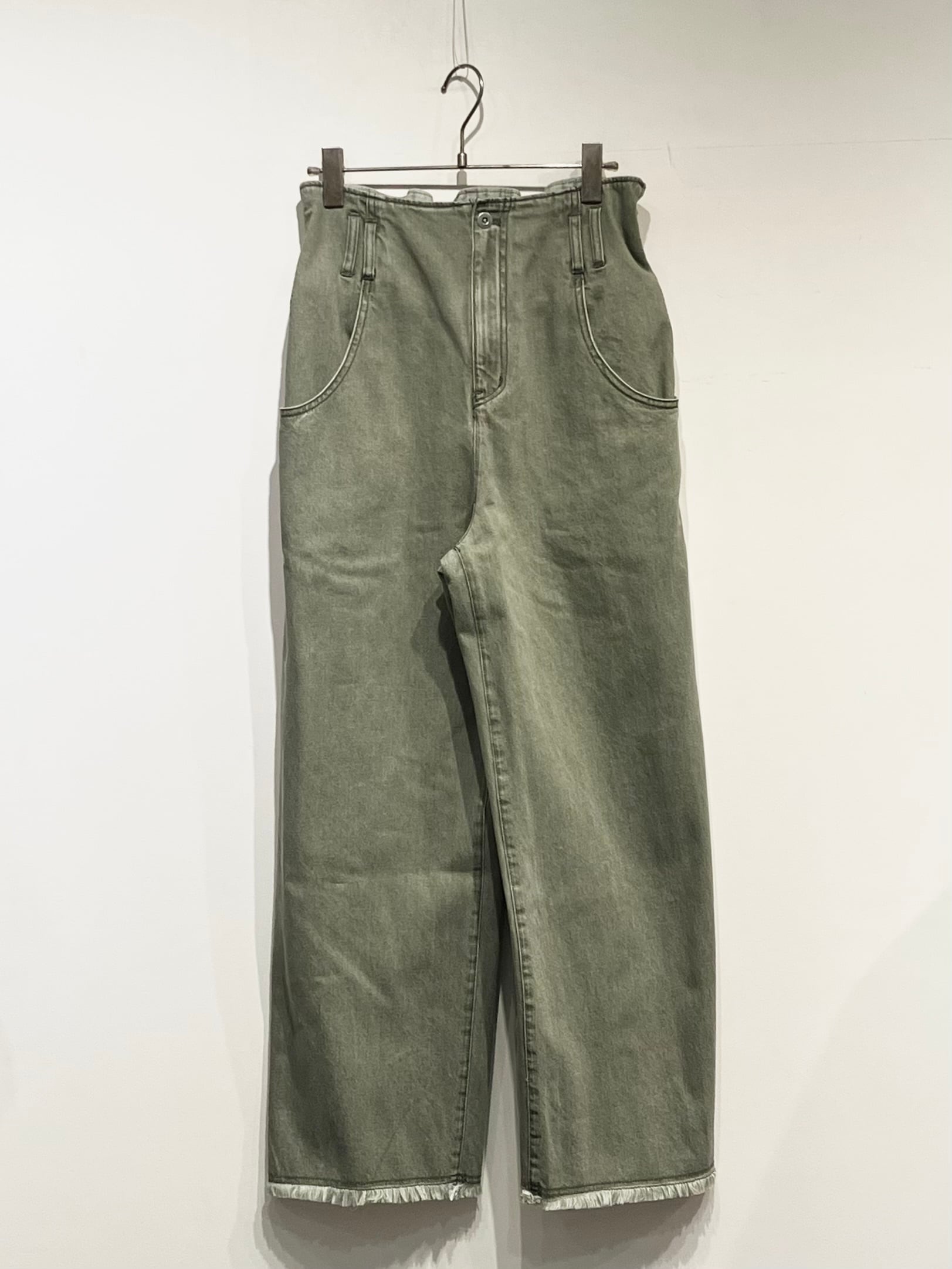 口の大きなフロントポケットと、裾のフリンジがこなれた雰囲気を与えてくれます。
