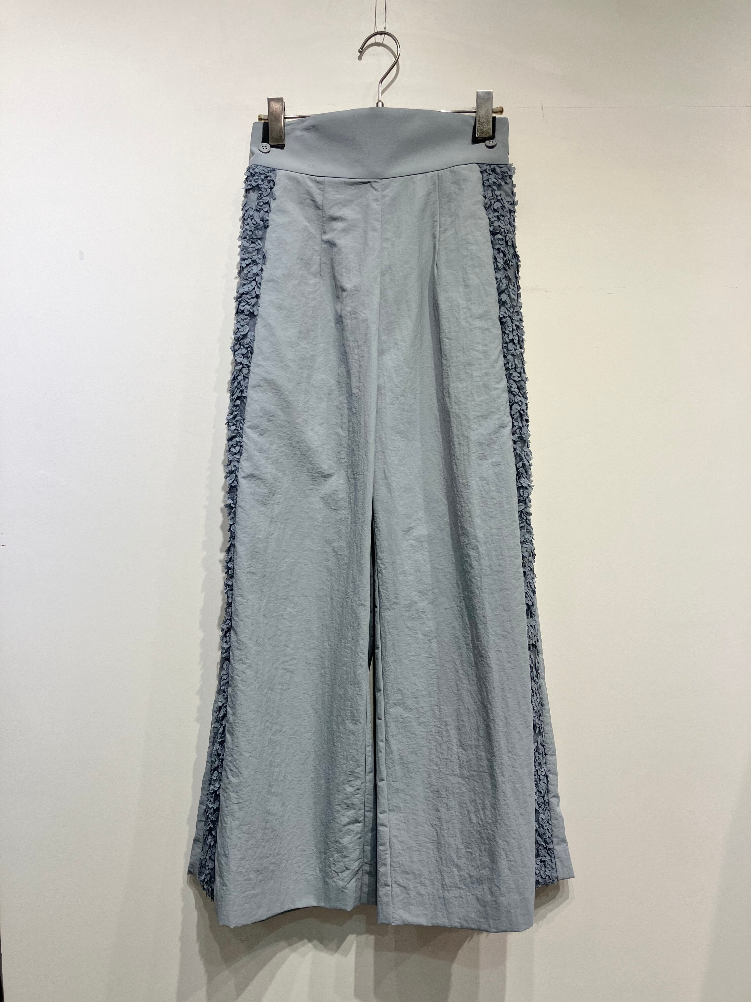 定番のスタイルアップ効果抜群のワイドパンツにダリアエンブロイダリーで