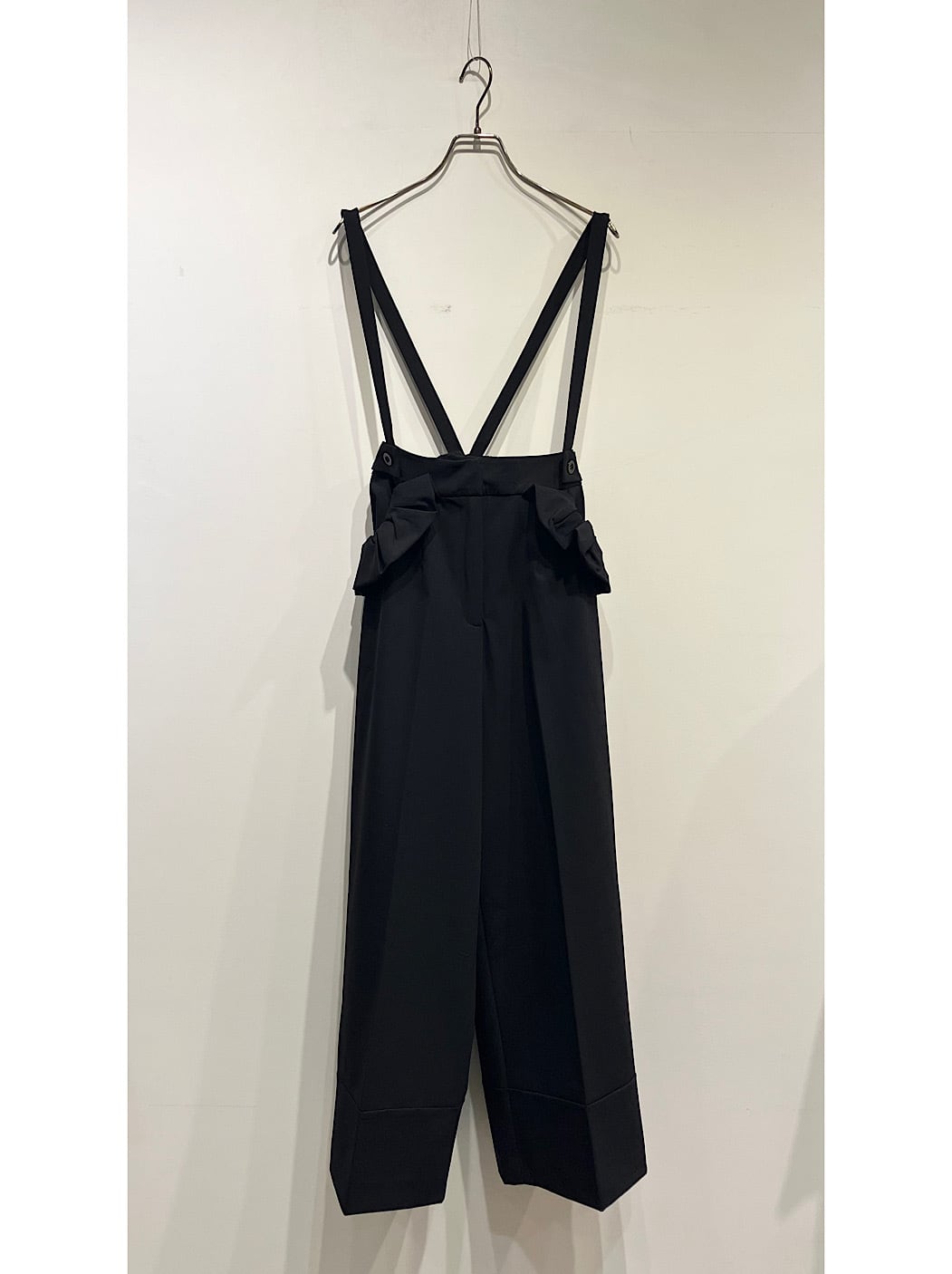 甘さときちんと感がひとつで楽しめるサスペンダー付きパンツ。