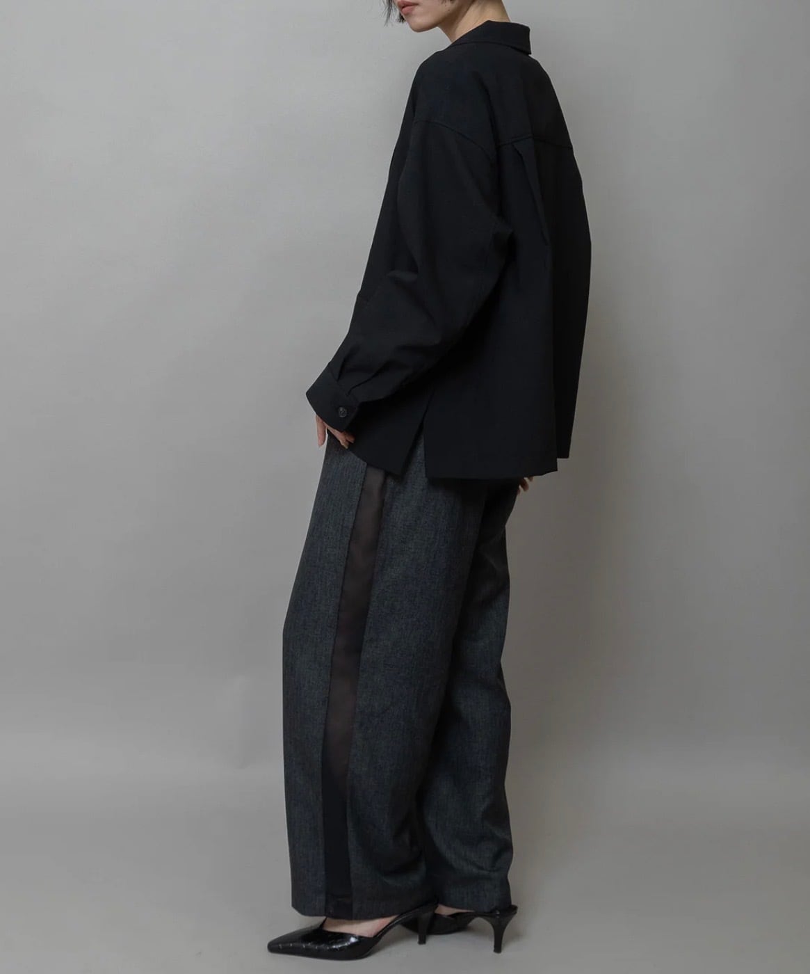 ボーイズライクやマニッシュな雰囲気に寄り過ぎないよう、あえて身体から離れる横広シルエットを強くして羽織ったときの抜け感につなげました。