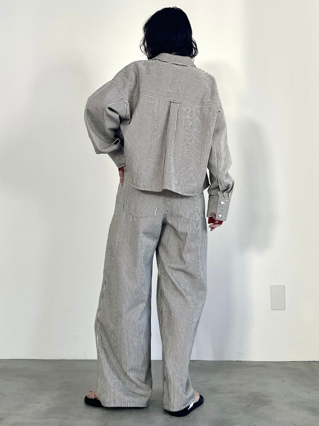 綿のデニムとヒッコリーに洗い加工を施し、カジュアルに仕上げました。