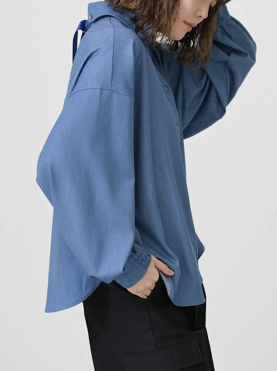 デニムのような表情を軽やかに楽しめる、バックデザインブラウス。