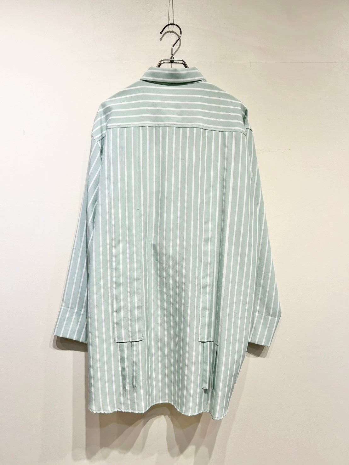 よく見ると、ストライプを前身頃で縦と横で使い左右で変化を付けています。