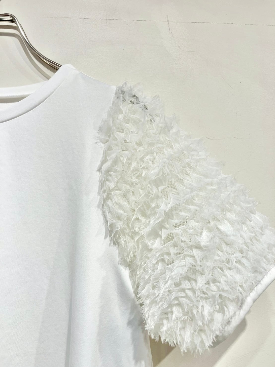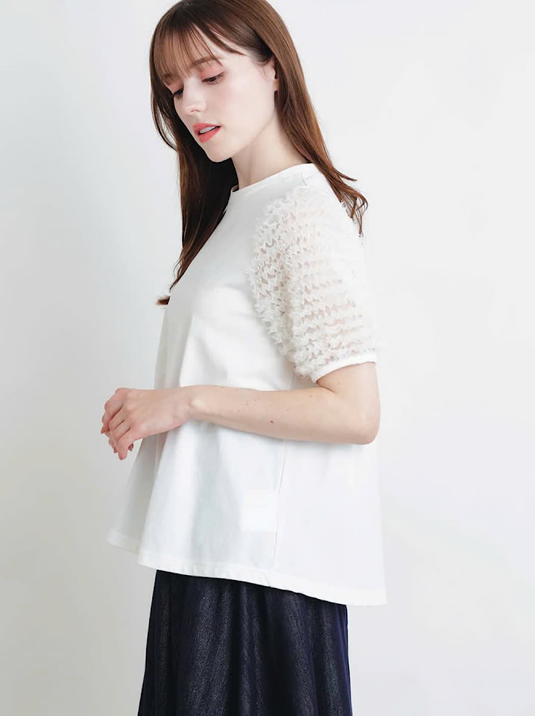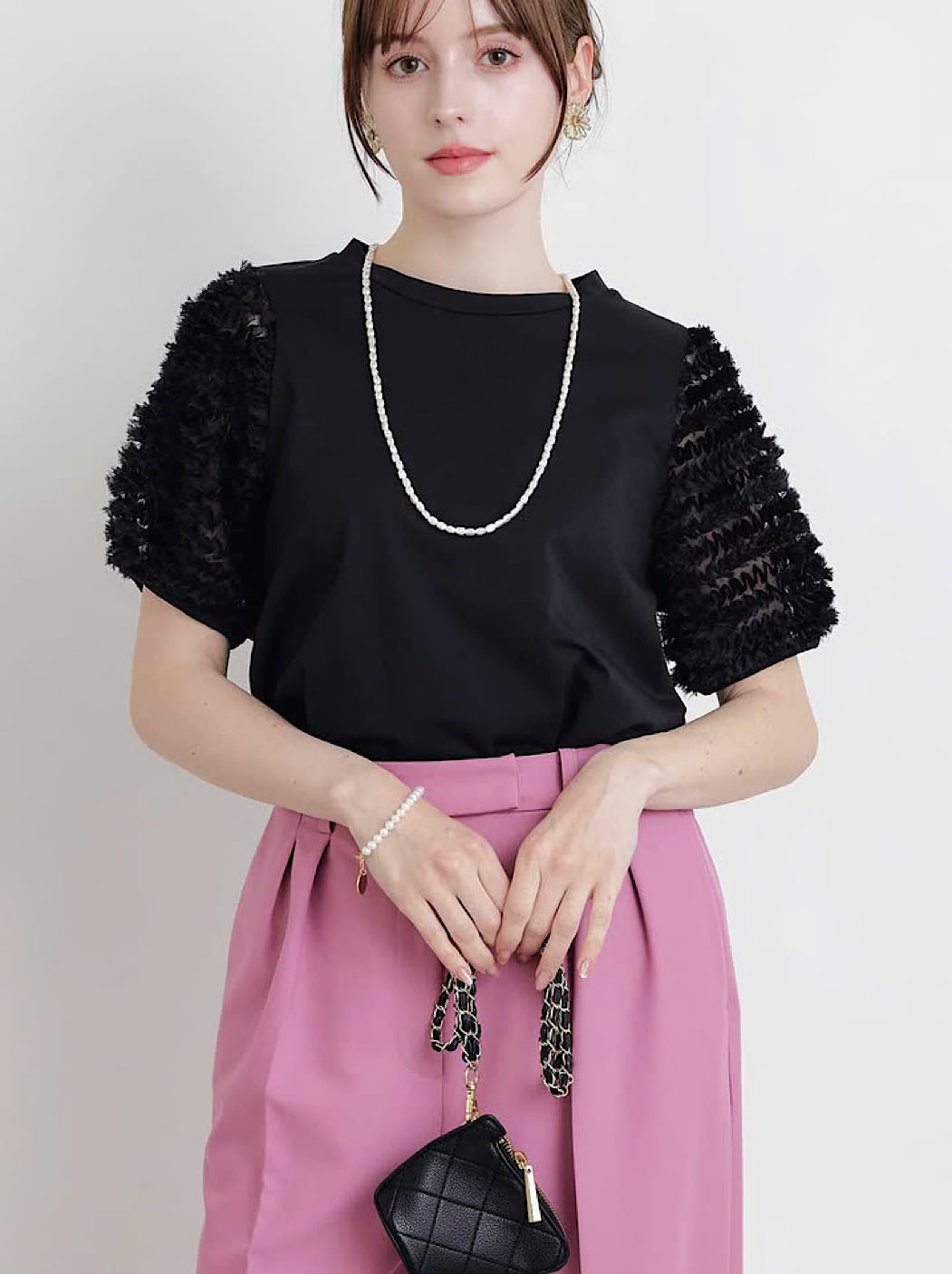 着るだけで華やぐティアードチュールスリーブプルオーバー。