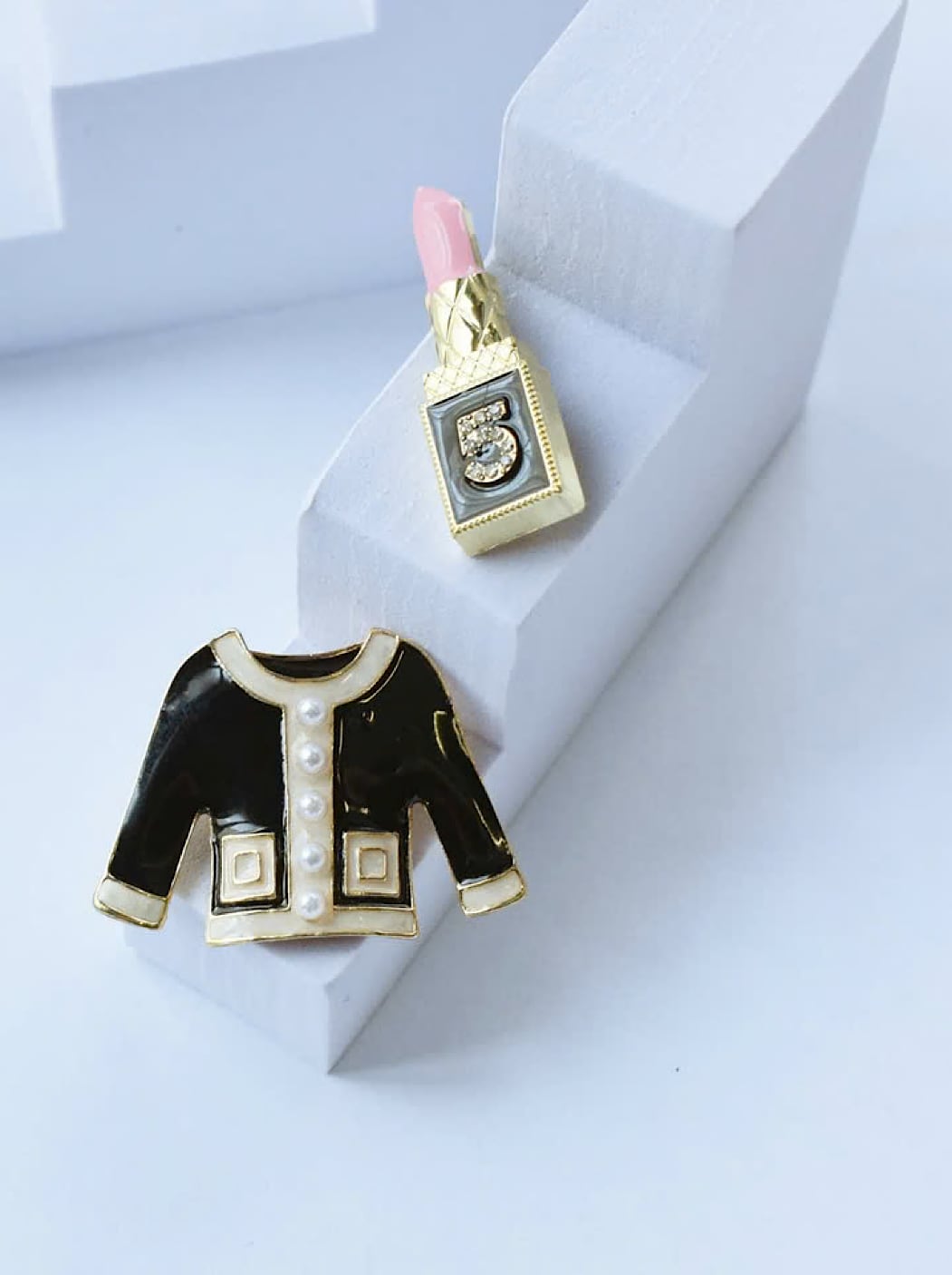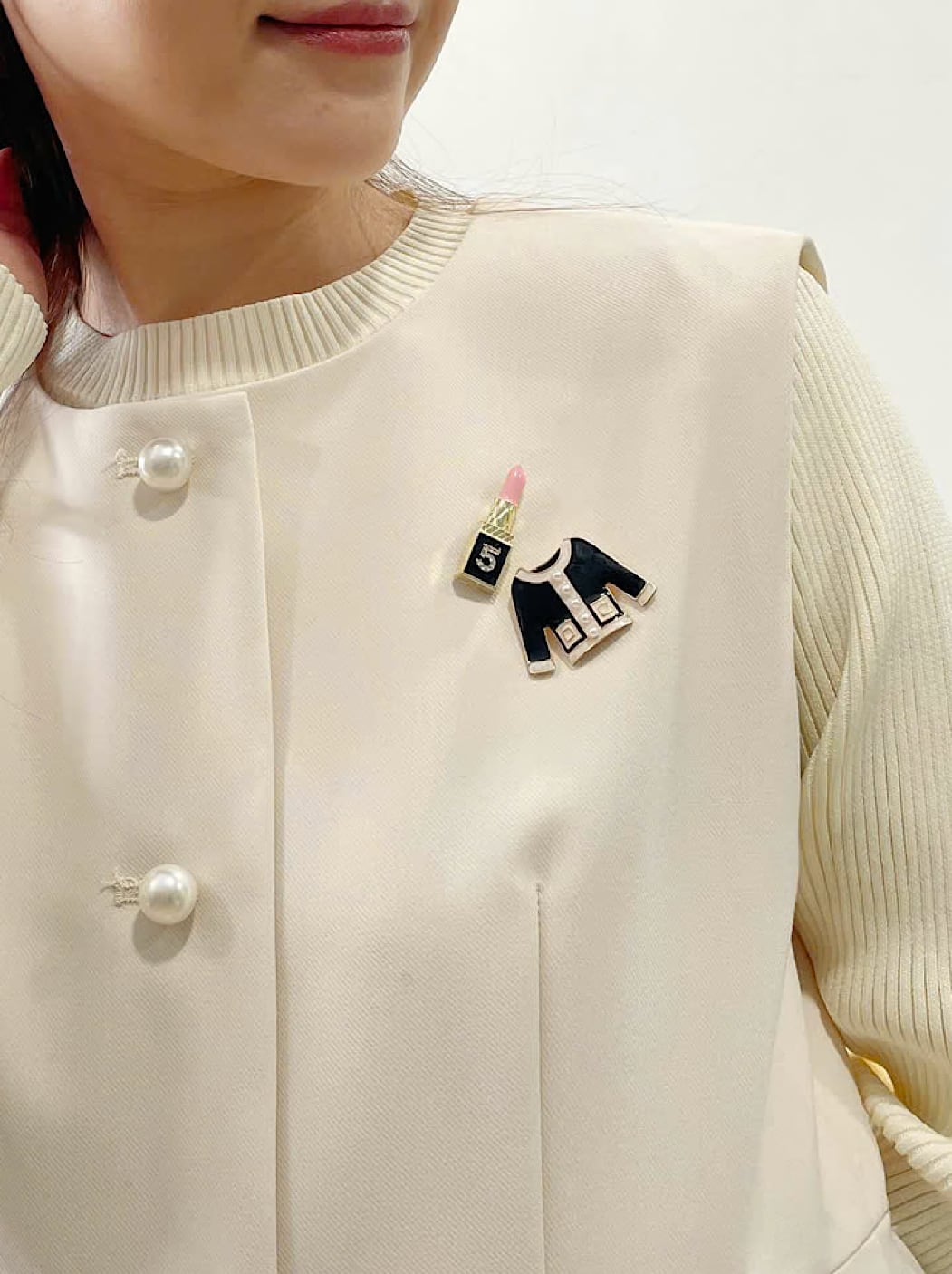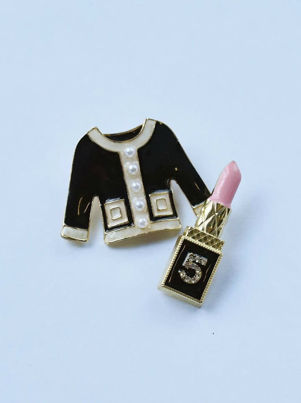 パール付きジャケット&リップがセットになったドレッシーなブローチセット。