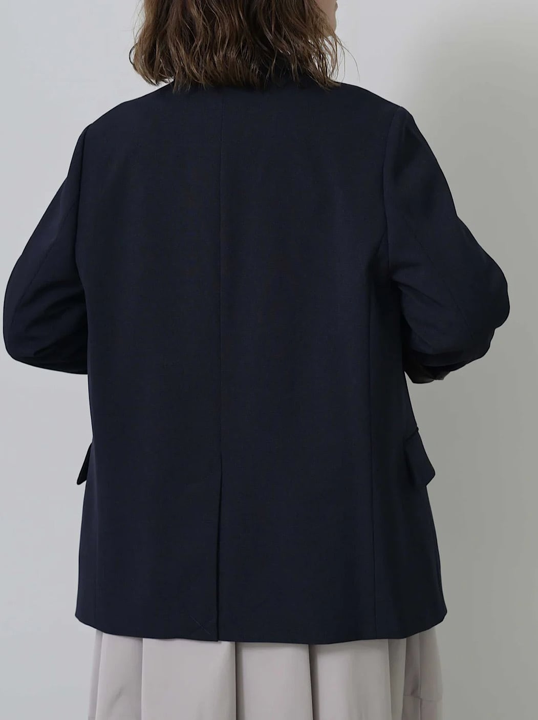 程よくゆとりのあるサイズ感で、きれいめな印象と抜け感を両立。ダブルボタン仕様できちんと感をキープしつつ、軽やかに羽織れる一着に仕上げました。デイリーから通勤スタイルまで幅広く活躍する、着回し力の高い万能アイテムです。