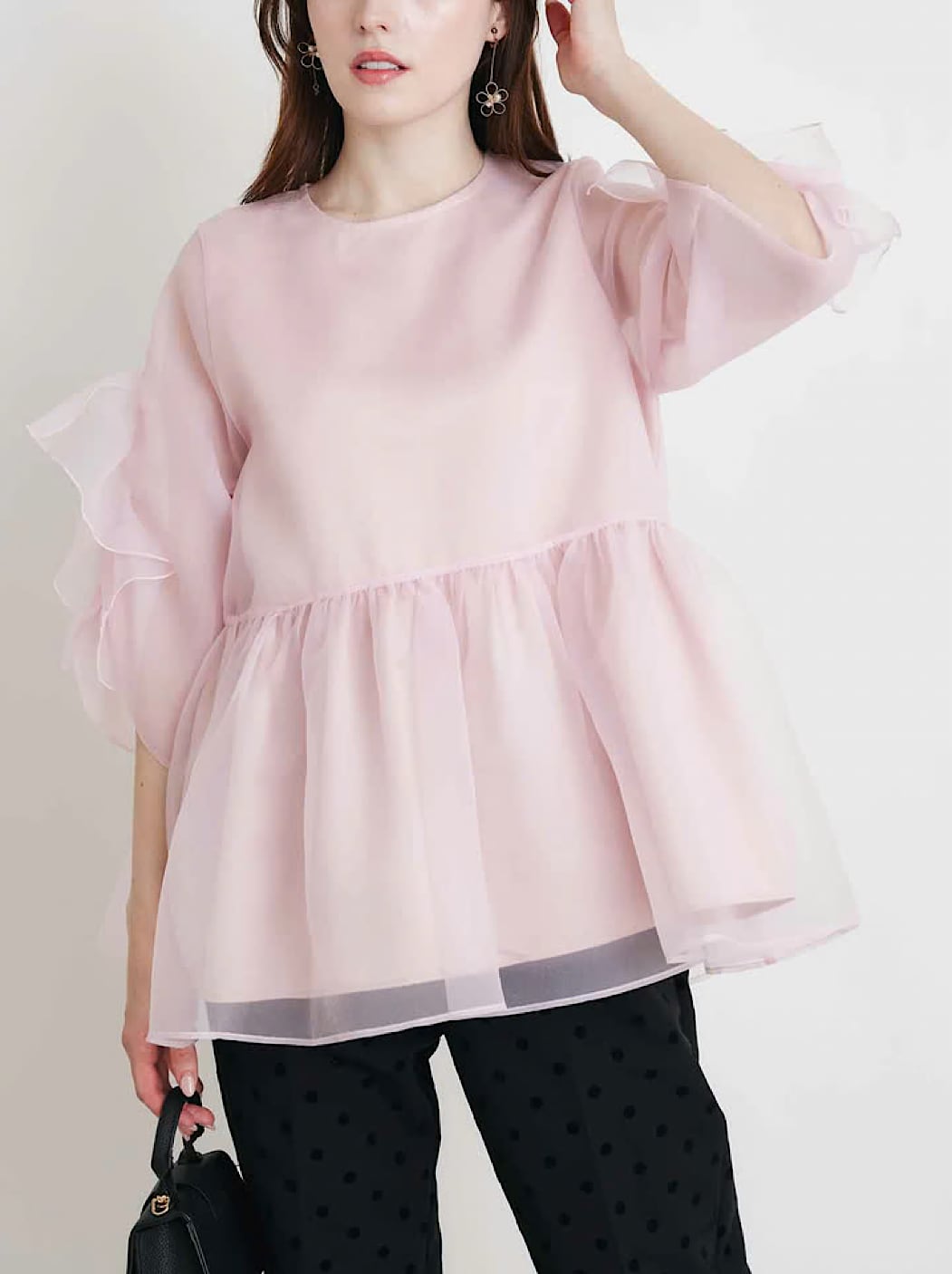 可憐さと華やかさを一枚で楽しめる大人可愛いブラウスです。