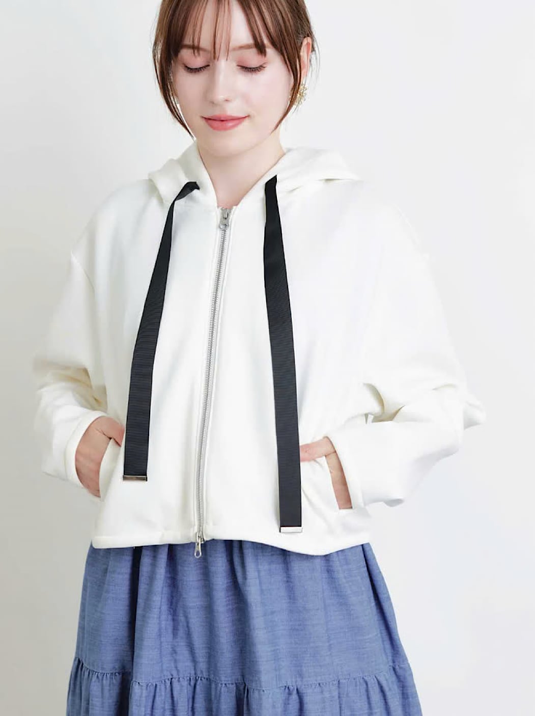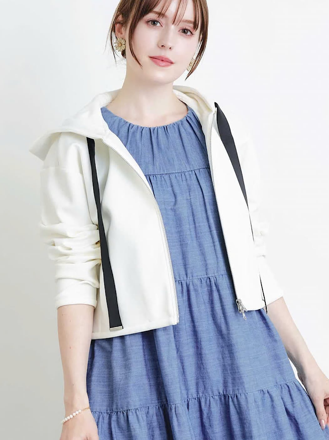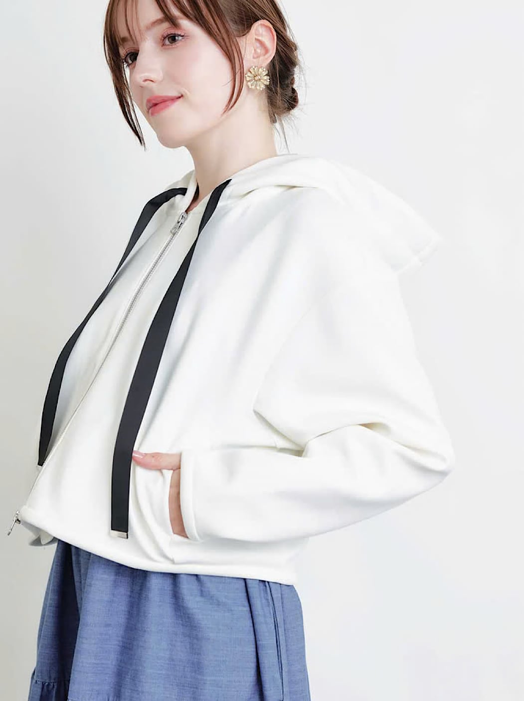 コンパクトなショート丈は、ワイドパンツやスカートとも好バランス。