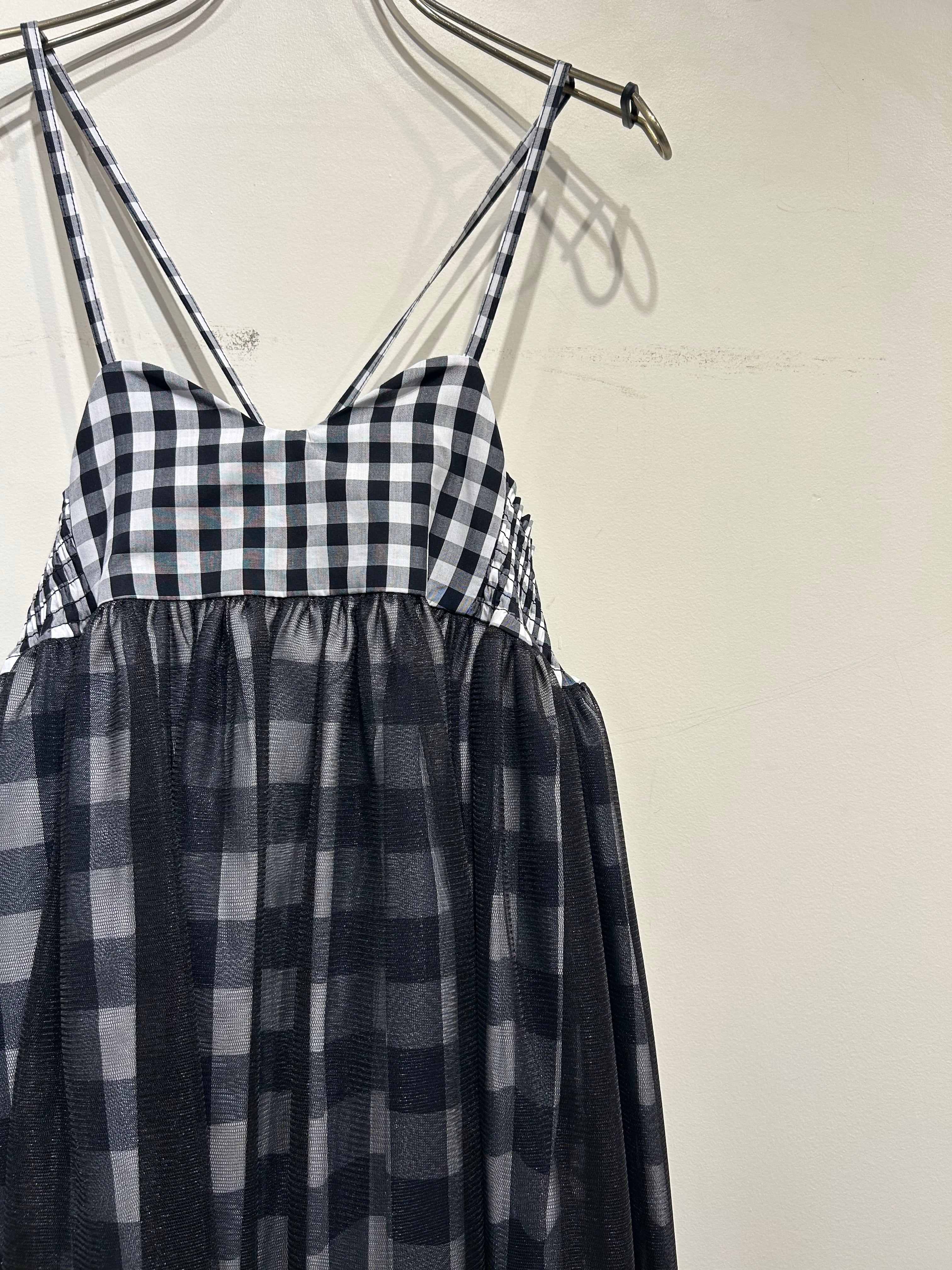 大小のギンガムチェックとチュールを組み合わせた後ろで紐で結ぶタイプのドレス