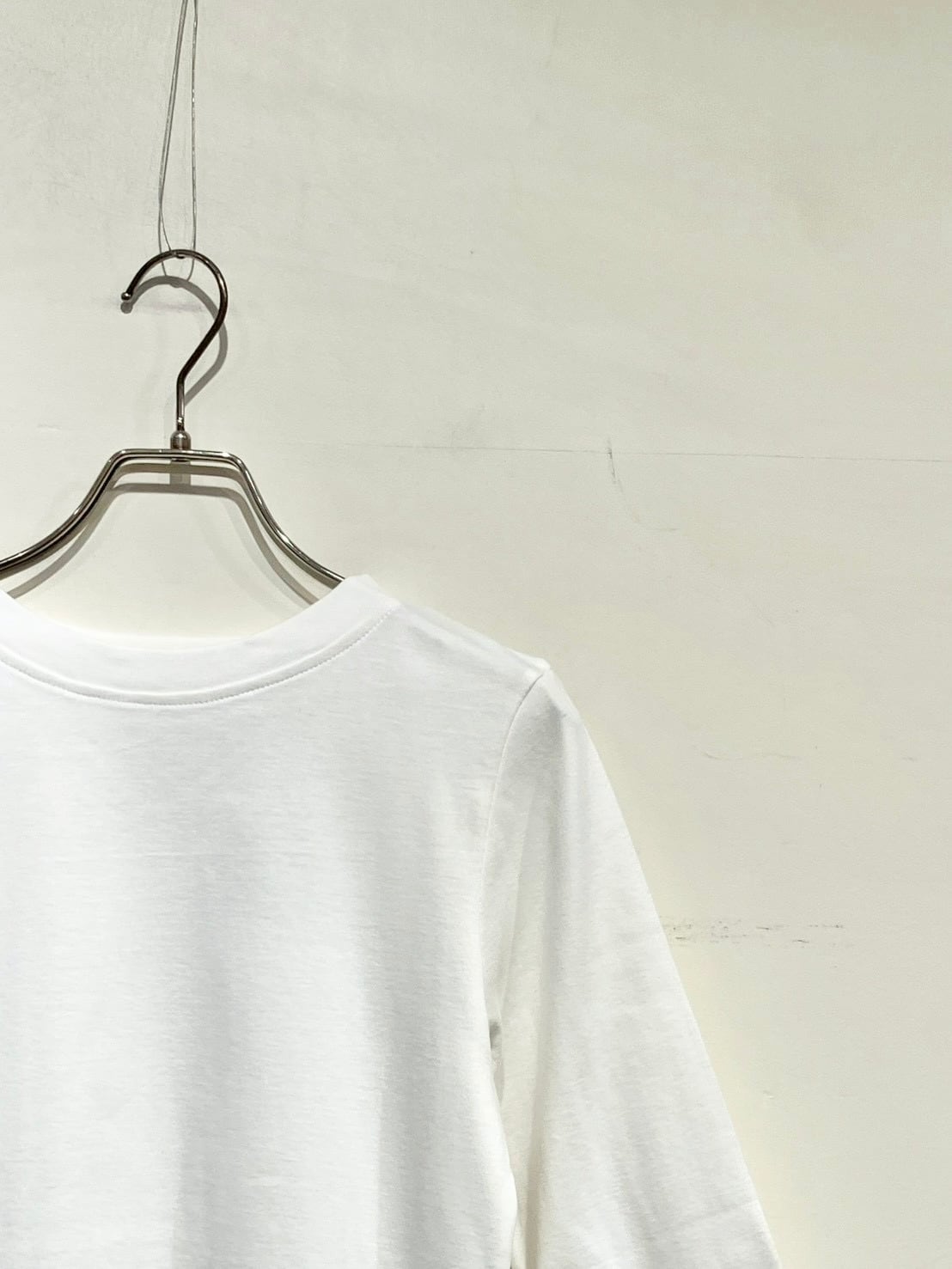 肘下あたりまで袖丈は、二の腕がとても細く見えます。